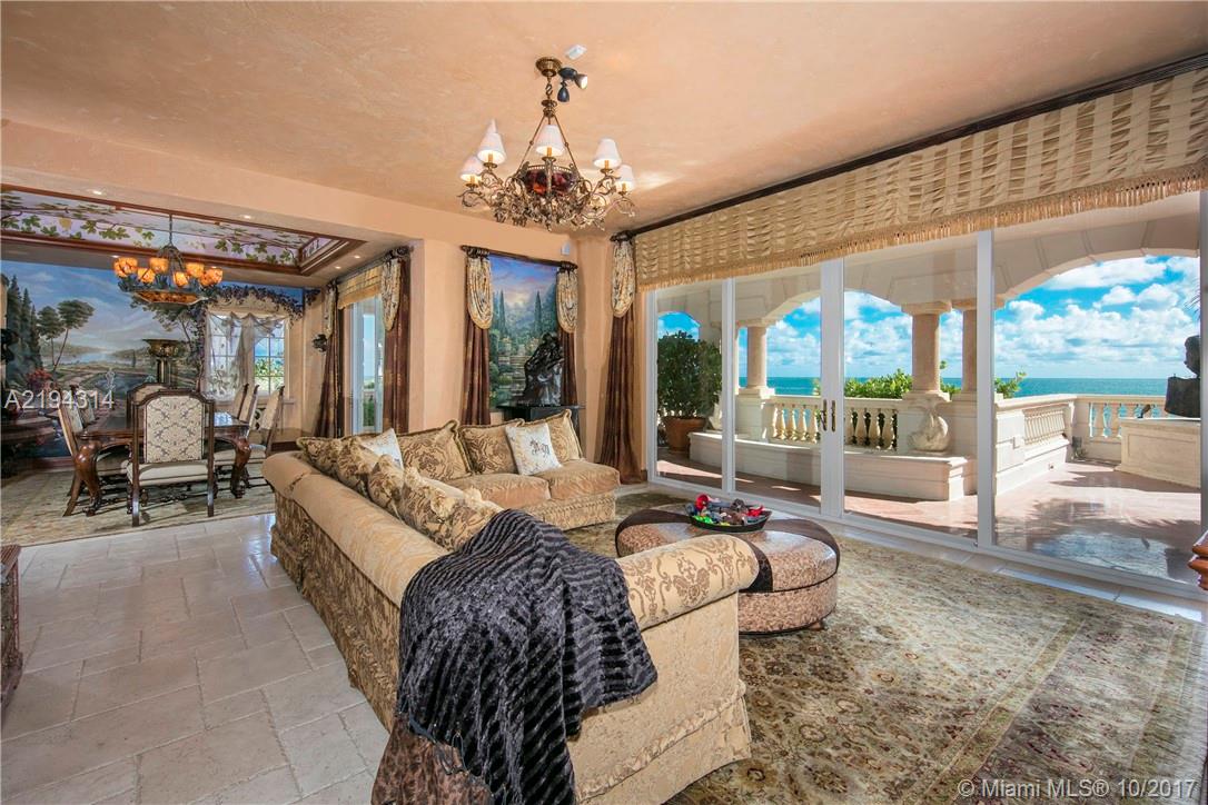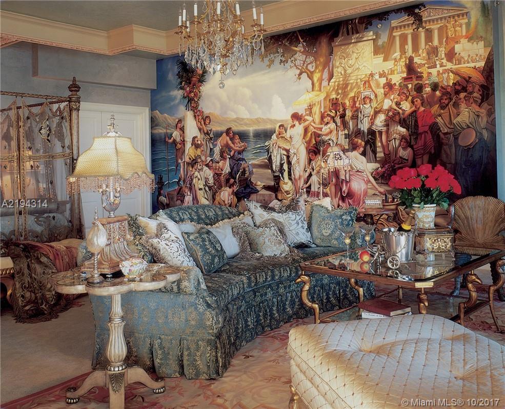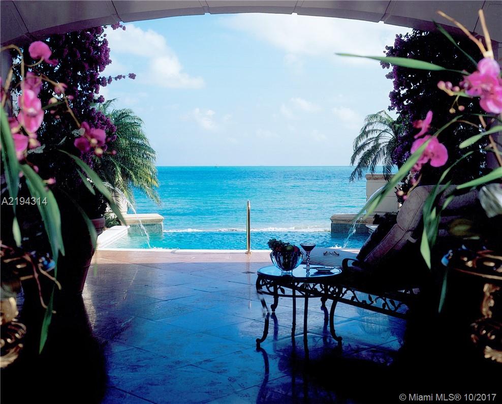 This spectacular ground floor center stack residence is a work of art. +/-7,696 SF of interior space w/expansive +/-5,300 SF terrace , private Infinity pool, Jerusalem stone floors flowing through the open living & family areas, custom bar, formal dining, Chef's kitchen w/top appliances and breakfast area. Hand painted wall & ceiling murals adorn this treasure throughout. Mesmerizing beach/ocean & Gov. Cut views. Maintenance fee is +/-$5,379.74 per month. FICA fee is $6,729.76 per quarter.