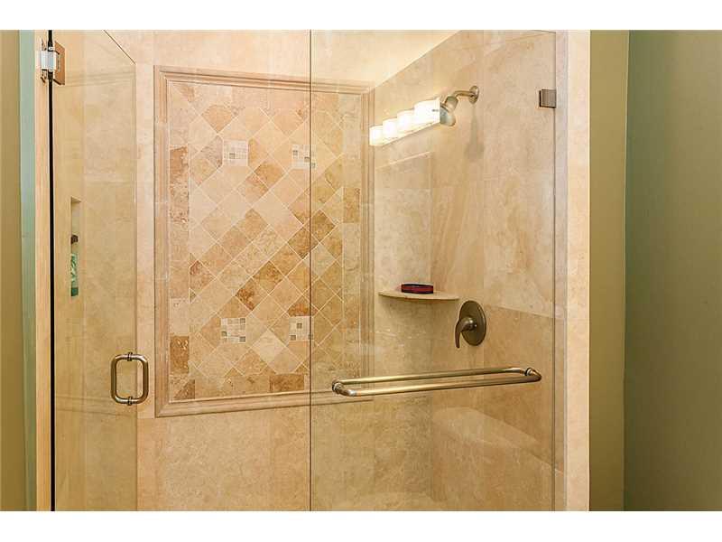 Highly upgraded split BR floorplan, including 24" porcelain tile flooring & crown molding throughout, upgraded marble in both bathrooms, 10' ceilings, Hunter Douglas shades, 2 terraces both finished w/ porcelain tile, very private & quiet side of building w/ tropical views. Both BR's have walk in closets (master has 3!), dining area plus breakfast area off kitchen. 2 parking spaces! Resort-like waterfront, guard gated complex w/ beautiful amenities (pool, gym, clubhouse, BBQ,dock avail., boardwalk, etc.)