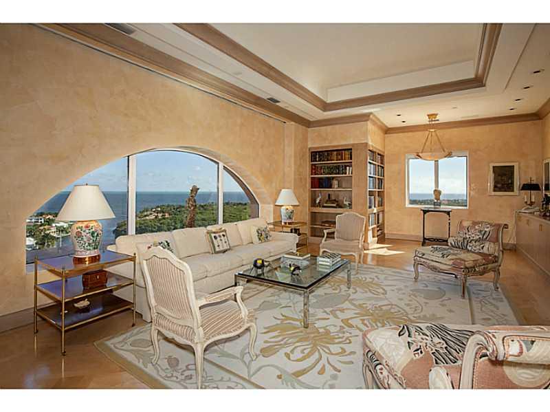 Enjoy panoramic views from your own palace in the sky! Luxurious Tower Suite with 10,190 sq. ft. spanning 2 floors. 6B/6FB/1HB & 6 terraces. Marble floors, Venetian plaster walls, crown moldings & custom built-ins throughout. Private elevator, generous sa lons w/ double high ceilings & walls of glass to entertain. Eat-in kitchen w/ top of line appliances. Media room & large library. Grand master bedroom w/ double high ceiling. 6 parking spaces and storage room.