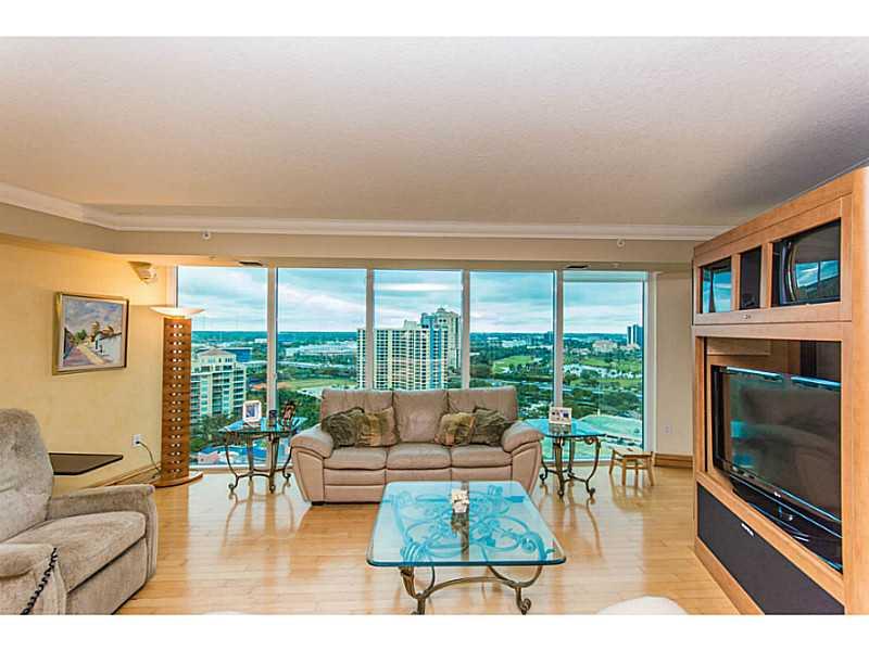 REDUCED TO SELL!! Unique model, one of few 2 bedrooms w larger living area in the building. Flowthrough unit w spectacular views of the Intracoastal, Ocean, city from a high floor. Floor to ceiling windows w tons of natural light. Split bedroom plan, se mi pvt. elevator entry, 24 hour guard gated access 5 star amenities, 2 story spa, 2 heated pools, 4 tennis courts, marina, valet, security & concierge. Ideal to be remodeled to buyer's taste!!! Motivated seller. Easy to show.