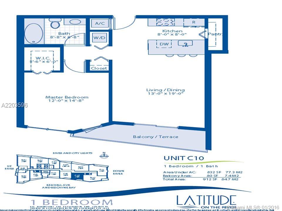 REDUCED-MOTIVATED SELLER- Latitude on the River-Designed by the Famous Arquitectonica. Fantastic water views from this Lower Penthouse Unit w/12 Ft Ceilings. This is the perfect 1 bedroom with an OUTSTANDING location. Just 2 blocks away from the NEW Brickell city center and ever abundant with Life, Shops and Restaurants of Mary Brickell Village. Kitchen is built with Italian Made European cabinetry & Stainless steel appliances. White Tile flooring throughout.Infinity Edge Pool & Fitness.Call Listing agent