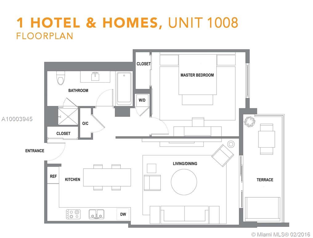 Beautiful 1Bed/1 Bath apartment at the 1 Hotel & Homes. Fully equipped with the 1 Hotel furniture package, designed by Deborah Aguiar. Five Start amenities including private owner’s entrance, valet parking, 4 pools, rooftop bar & pool, Tom Colicchio’s Beachcraft restaurant, and much more. Custom kitchens created by Italkraft feature stainless steel appliances by Sub-Zero and Bosch, Grohe fixtures and Kohler sink basins. This unit can be rented short-term with no restrictions. Easy to show.
