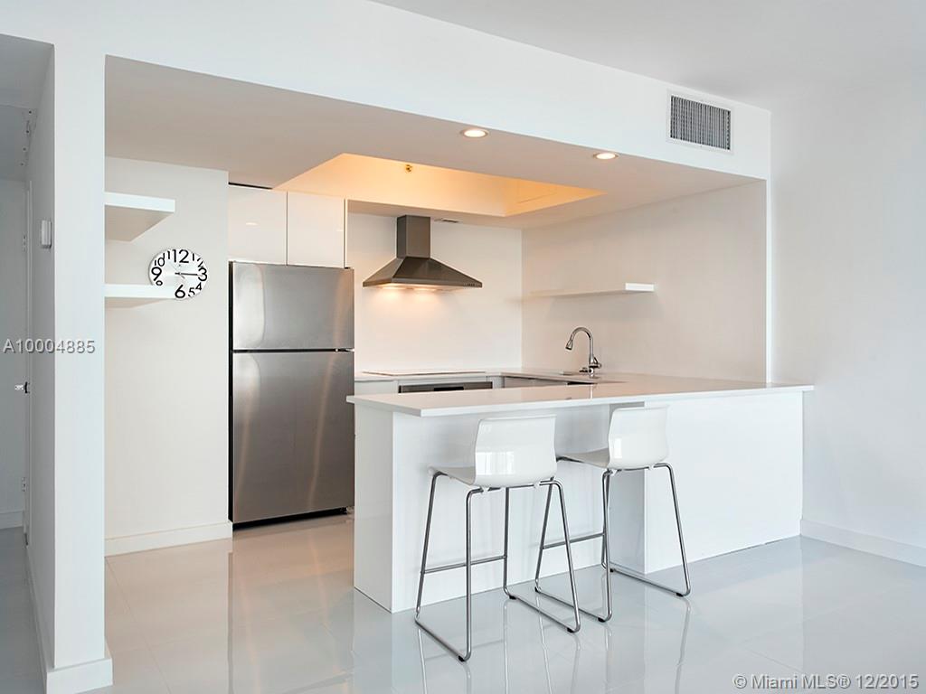Oversized 1BR/1.5BA completely renovated unit in Belle Plaza. Wide sweeping bay, marina views, & open balcony. Bright airy w/ high ceilings, white glass floors, Euro-style hi gloss kitchen w/ quartz countertops, Italian fixture, new hurricane impact wall-to-wall windows & door. Mid-century modern full service Bldg; Valet, Bayfront Pool, Tennis, Boat Dock, BBQ, Gym, WiFi & assigned Parking Space. Across from The Standard, 5 min away from restaurants & Lincoln Rd.