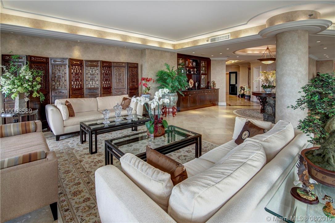 Magnificent 6,444 sq ft penthouse with spacious wraparound terraces & sweeping views of the ocean, Biscayne Bay, & the entire Miami skyline. This opulent unit features 3 bedrooms, 4 baths, powder room, cedar wood dry sauna, elegant office & staff quarters. Carefully appointed features include: beautiful updated kitchen, expansive master suite, marble floors, custom built-in millwork, recessed lighting, tray ceilings & more. Premiere building offers top-notch services & a renowned private restaurant.