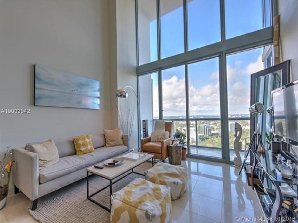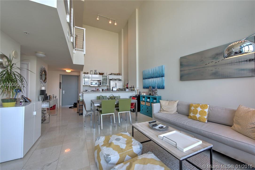 Priced to Sell. A beautiful 2 Bed/2 Bath bi-level Penthouse at Blue Condo w/ 20-foot ceilings with floor-to-ceiling glass windows, open kitchen w/ stainless steel appliances and stone countertops, and marble and wood flooring throughout. Unit includes two side-by-side assigned parking spaces on the 4th floor plus option to park a third vehicle with valet. Building amenities include: 24-hr concierge, 24-hr valet parking, 2 swimming pools, hot tub, fitness center, club room, business center, & more.
