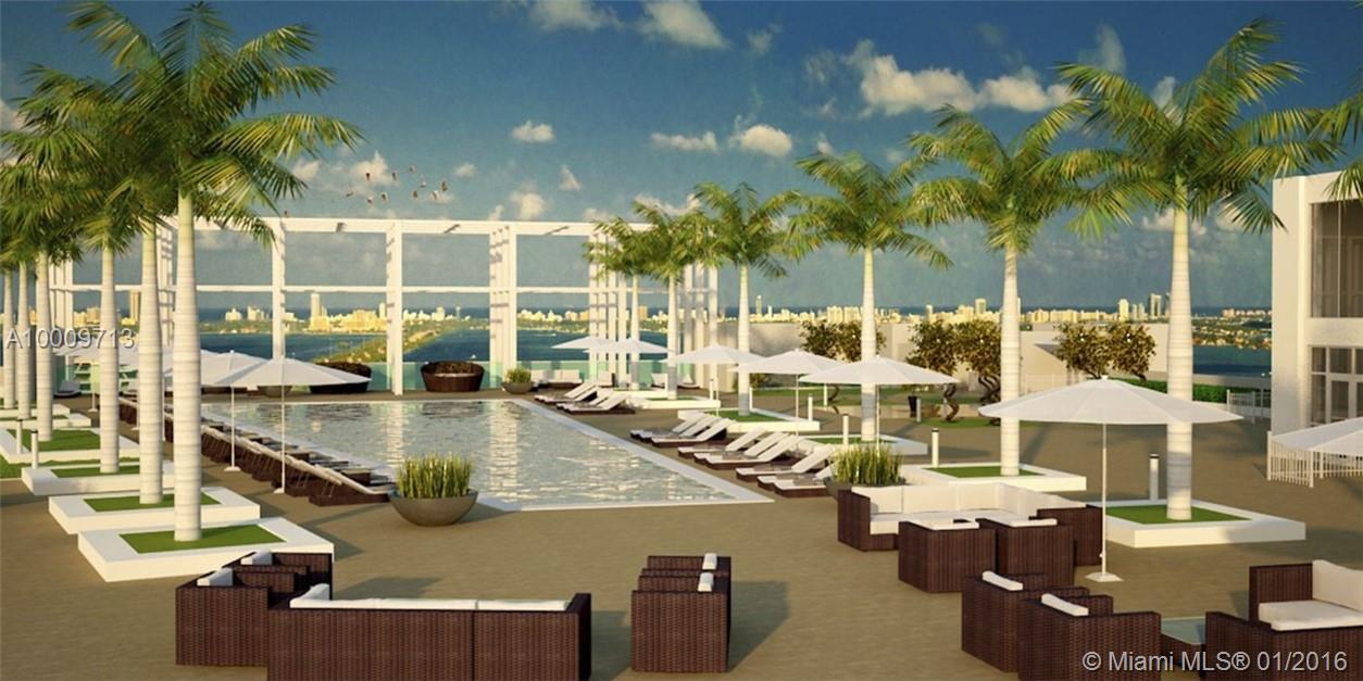 Spacious corner unit, split floor plan with large wrap around terrace. Italian kitchen, ss appliances, stone countertop with island ideal for entertaining. Floor to ceiling windows off master that access terrace, walk in closets, tall unfinished concrete ceilings. Full service building with concierge, gym, pool, steam and sauna. One assigned space, additional with valet. Pet friendly. Steps to everything in Midtown, Wynwood and Design District.