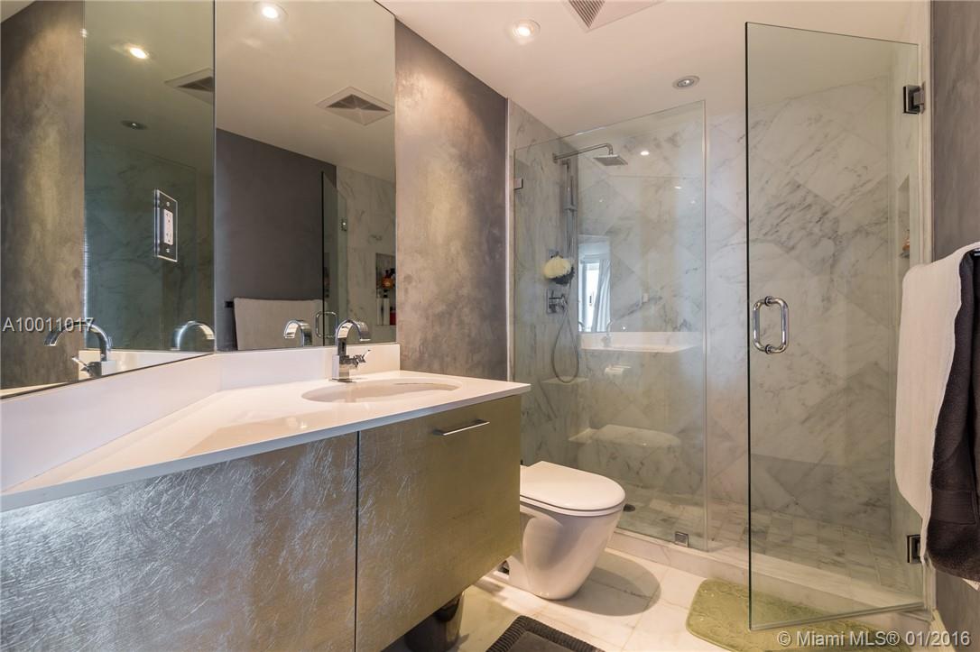 Breathtaking and highly desired corner fully renovated 07 line. Some upgrades include brand new European kitchen w/ Viking & Miele appliances, Thermador mirrored induction cooktop & Sub-Zero wine cooler. Venetian plaster in ceilings, decorator brand new bathrooms w/ Carrara marble, & hardwood floors. Unit boasts gorgeous, panoramic views of Miami Beach & the Downtown Miami from a wrap around terrace and floor to ceiling glass windows. Very private condo building with spa, gym, 2 pools & much more.