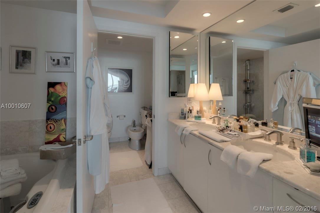 Incredibly rare, east-facing 1 bedroom at the luxurious Jade at Brickell Bay w/ 1,135 interior sq ft; a large, expansive terrace suitable for outdoor dining & lounging; marble flooring throughout; & a breathtaking view of Biscayne Bay & the sunrise. Kitchen equipped w/ cherry wood cabinets, granite countertops, Sub-Zero refrigerator, wine cooler, & cappuccino maker. Lavish bathroom w/ Jacuzzi tub, separate glass-enclosed shower, bidet, & dual vanity with marble countertops. World-class amenities.