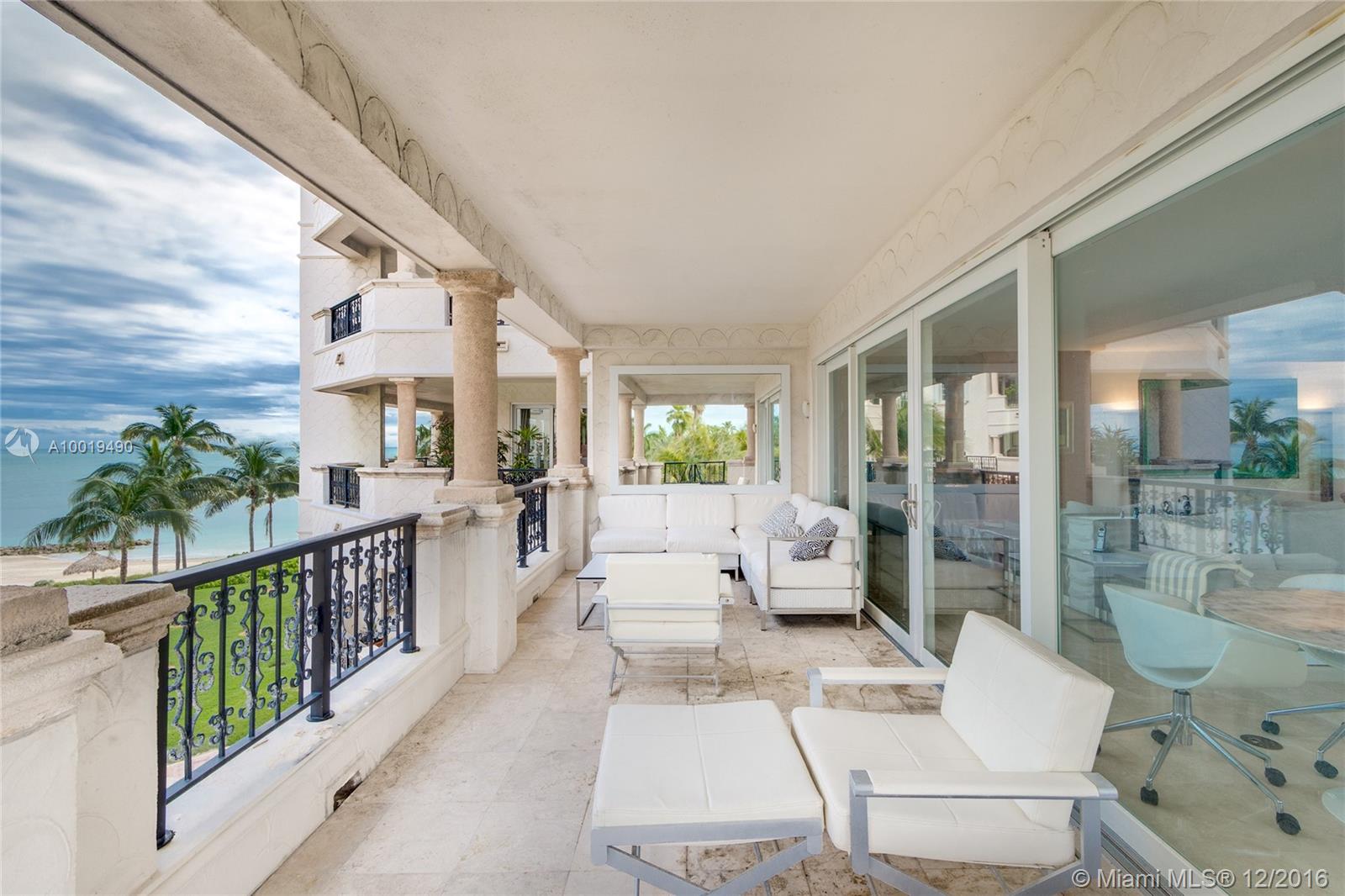 This most desired renovated three bedroom, three full plus one half bath Oceanside corner residence on Fisher Island is a vision of artistic style and decor. +/-3,140 sf. with open living & dining areas, fine marble floors, custom furnishings and open ocean views. Chef’s kitchen with top of the line appliances & custom cabinetry, Corian center island with eat-in breakfast seating. The sumptuous master suite sports hard wood floors, walk-in his/her closet, private balcony and master bath with pedestal tub and standing glass shower. The other two bedrooms are each spacious and beautifully designed sporting rich hard wood floors and en-suite baths. Large wrapping balcony with open seating and al fresco dining area. Maintenance fee is 2,599.76 per month. F.I.C.A. fee is $6,729.76 per quarter.