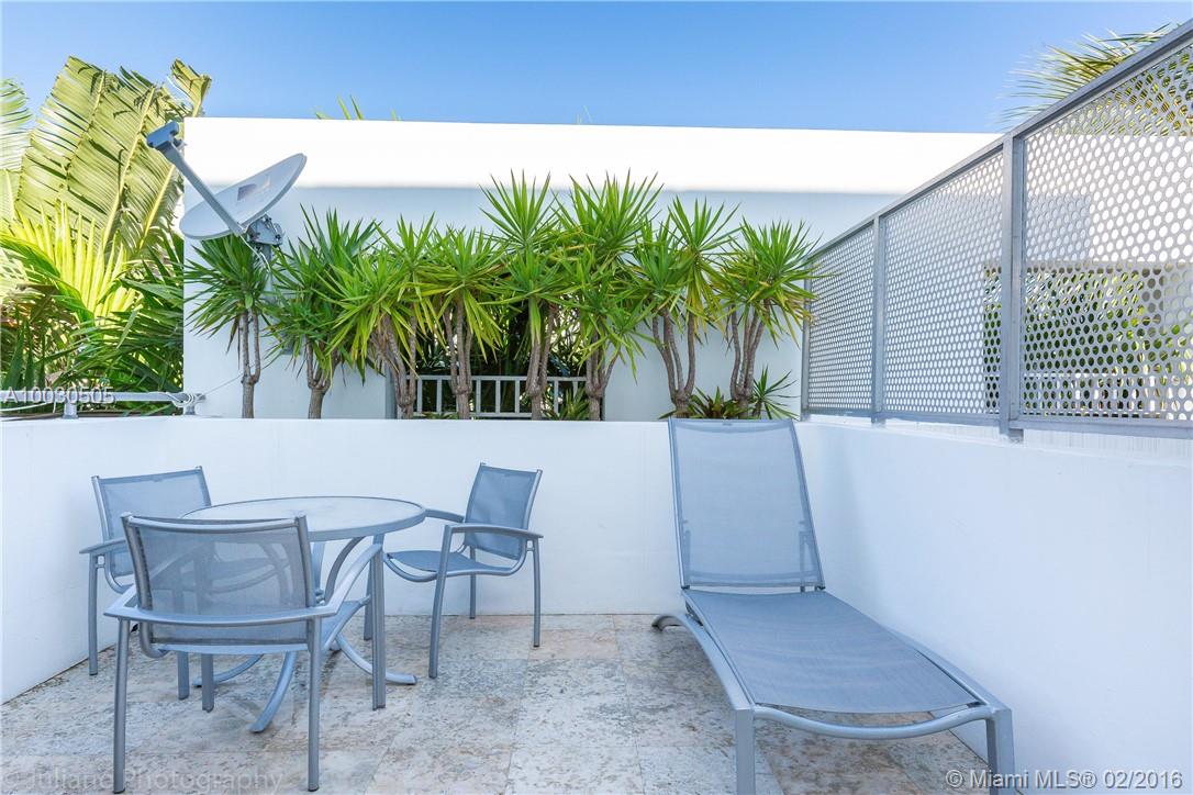 PRICE IMPROVMENT - Stylish South of Fifth Condo, modern two story condo located in a beautifully landscaped boutique building on a quiet street in the highly sought after SoFi neighborhood. This 2 Bedroom 2 Bath condo with updates offers hardwood flooring, stainless steel appliances and many custom built-ins. Unit also has it’s own w/d ,new central air and a landscaped private terrace with awning. Included 2 secured covered parking spaces, key coded gated entry, beautiful pool area,storage ,bike room.