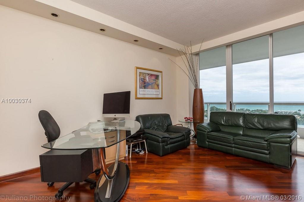 Rarely available S.E. Corner 3 bedroom 3 bath + 2 terraces + 2 parking spaces. Extraordinary high-end finishes throughout the apt. Solid exotic wood and Granite slab floors. Venetian plaster walls .High gloss wood kitchen cabinets,Custom design walk-in closets, recessed lighting,coffered ceilings throughout the apartment and Hurricane shutters. Magnificent water views from every room. 25000 Sq Ft world class spa & gym included in maintenance.
