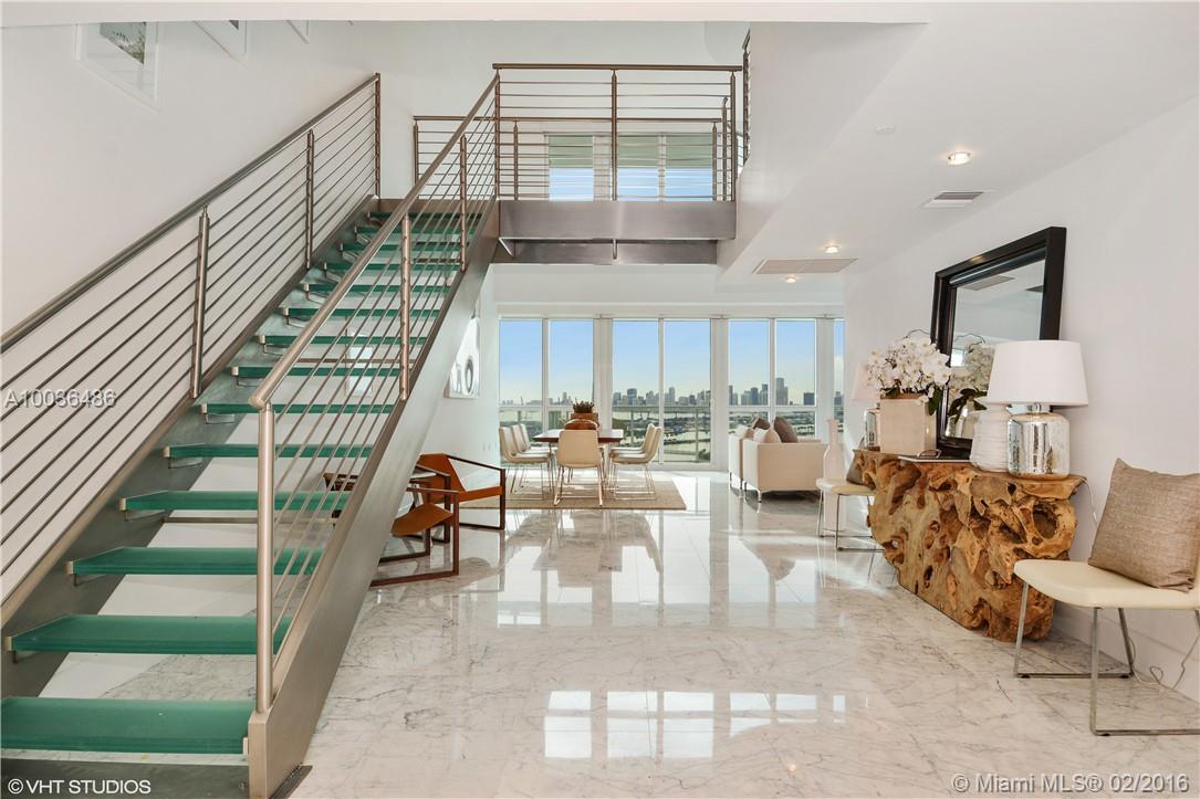 Spectacular Penthouse in the Bentley Bay. Experience unsurpassed views of Biscayne Bay, Star Island, & Downtown Miami. This two story 2 bed 2.5 (1,909 SF) unit features double height (20 ft) ceilings in the living & dining rooms, 2 large wrap-around balconies with West, North & East views towards to the Ocean. This full service luxury building offers 24hr security, valet, concierge, world class fitness center & heated pool & spa. World class dining, entertainment & brilliant beaches are minutes away.