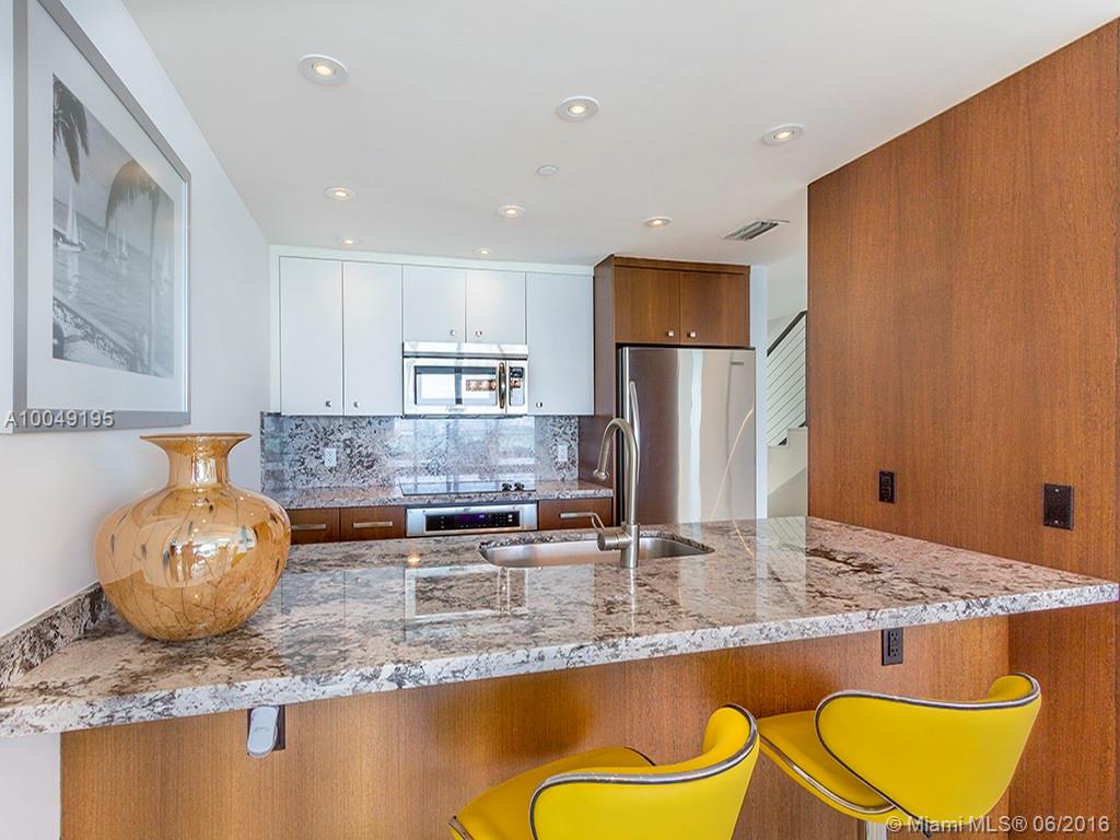 Ultra-modern Steven G designed 1884 sq ft split level with expansive Bay views. 2 Bedrooms + Den, 2 full Baths and 1 half Bath. Watch yachts pass from two balconies located on both lower and upper levels. Great interior flow-through design w/upgraded appliances, custom mirrors & designer furniture throughout. Elevator brings you to private foyer entrance. Dock space available. Enjoy pool overlooking Bay and Miami Beach. Full Security, gym and two assigned parking spaces on 1st floor. Turn-Key!!