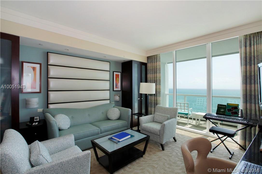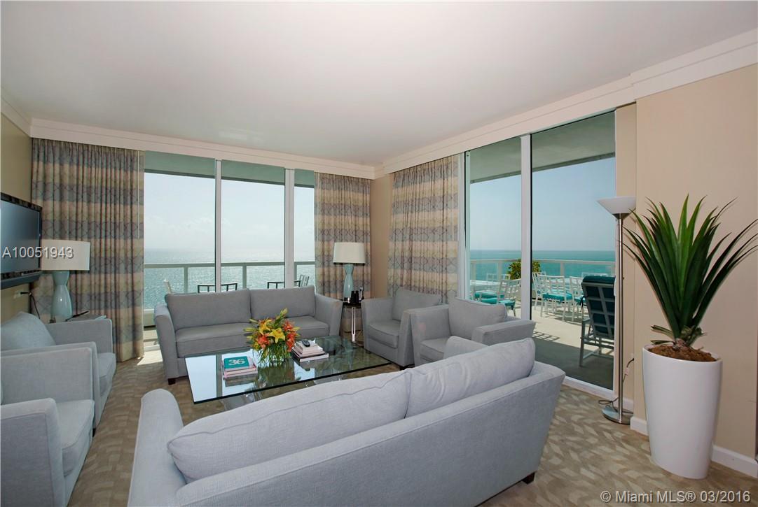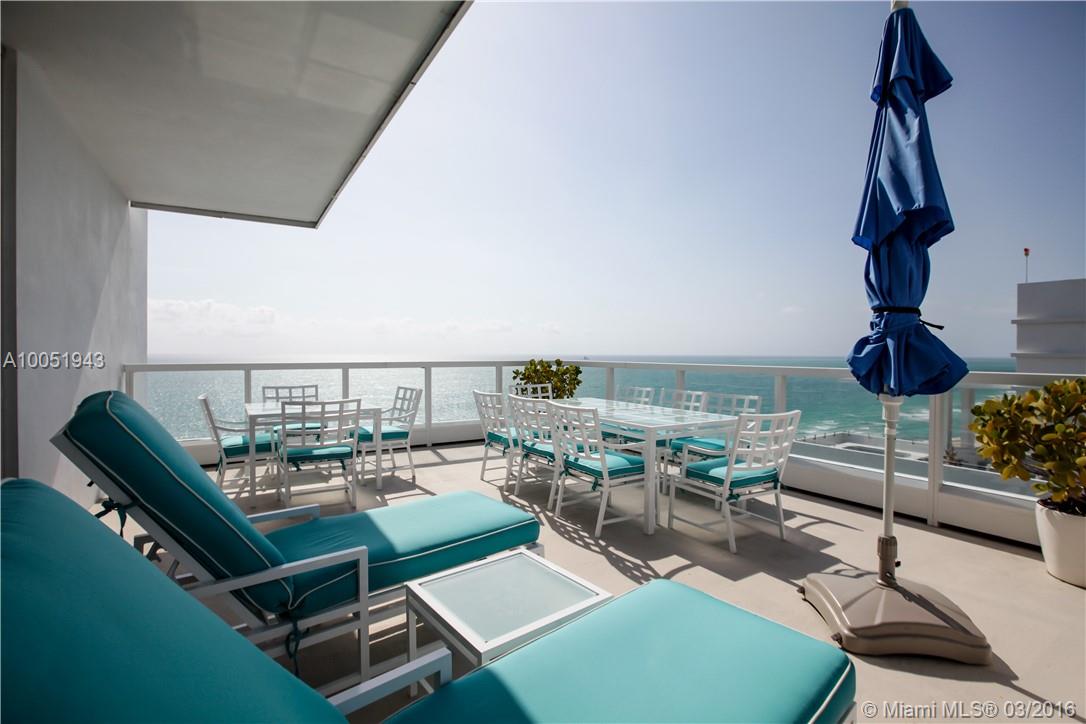 Enjoy a penthouse experience at the Fontainebleau w/ this truly presidential, one-of-a-kind ocean-front suite that wraps around the SE corner of the 18th floor in the Sorrento building w/ 3 terraces plus a large private deck & direct ocean, bay & city views off the living room, 2 grand bedrooms, 3 full bathrooms, a large entry hall, multiple lounge areas, wet bar, full kitchen, dining room seating for 10, and 2 garage parking spaces.