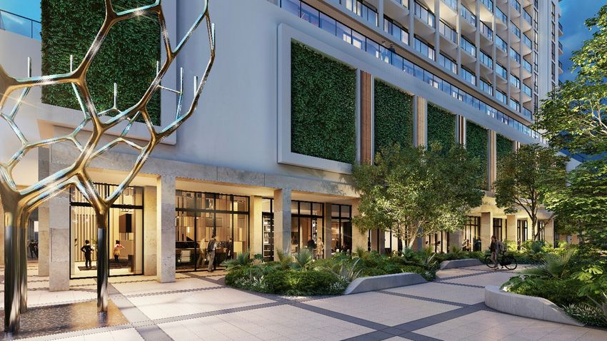 The residences feature spacious layouts with ceiling heights starting from nine feet, extra-strong glass doors and floor-to-ceiling windows, French balconies, and serene terraces.