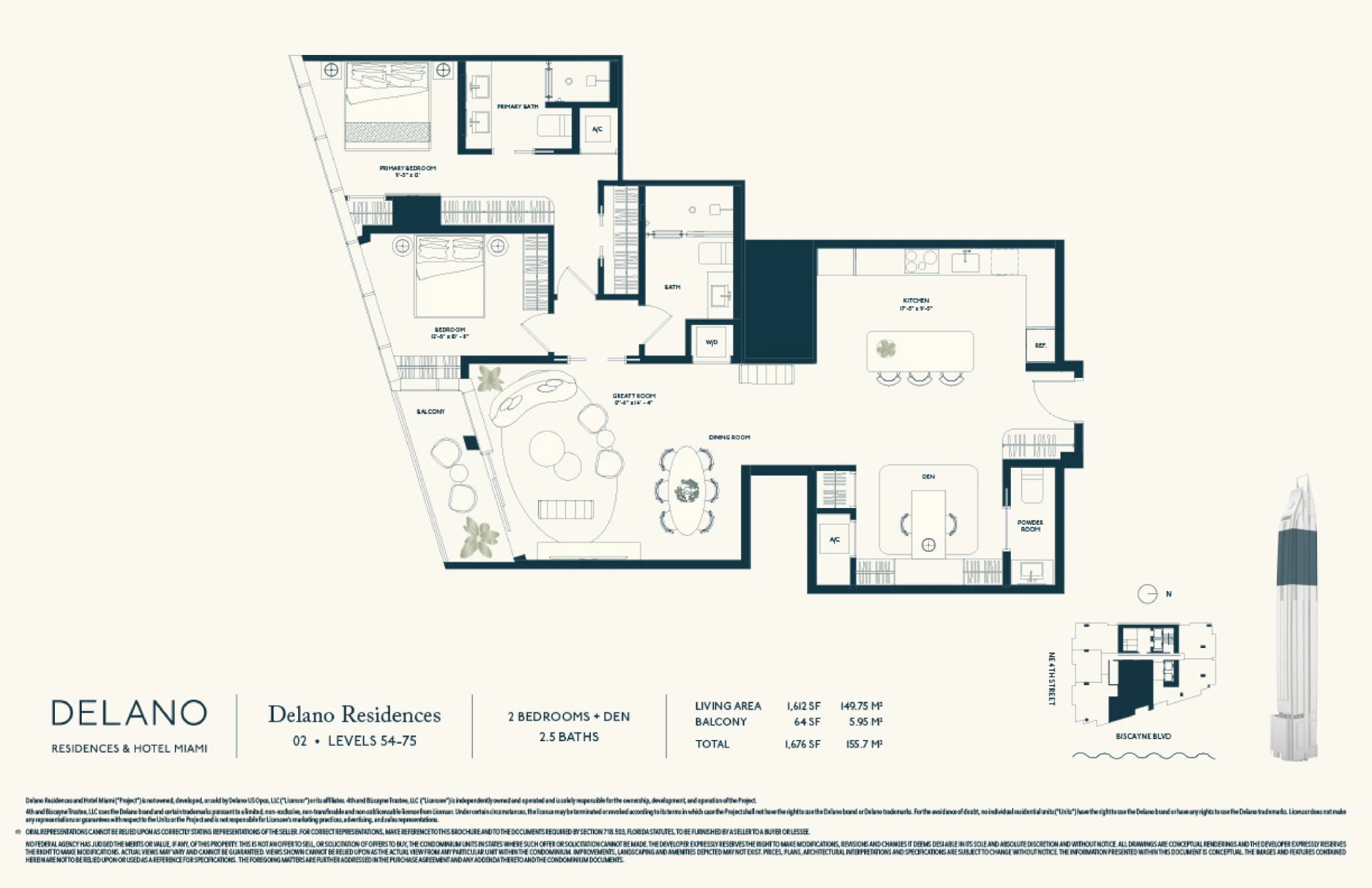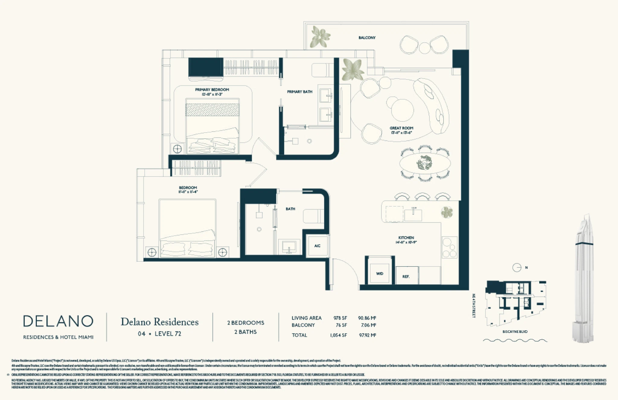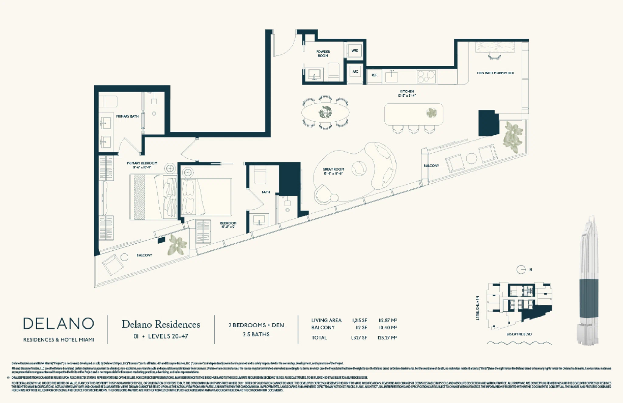 The floor plan collection offers a wide range of formats, enabling Delano Miami to appeal to multiple buyer categories.