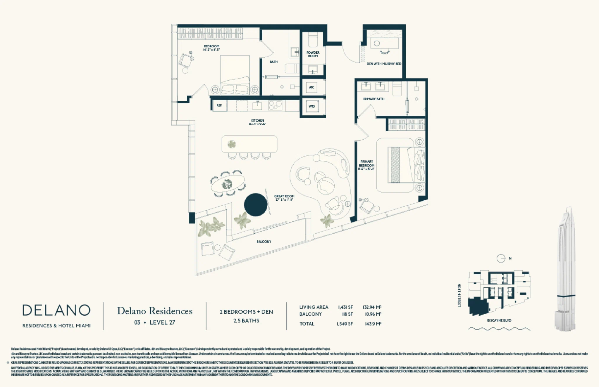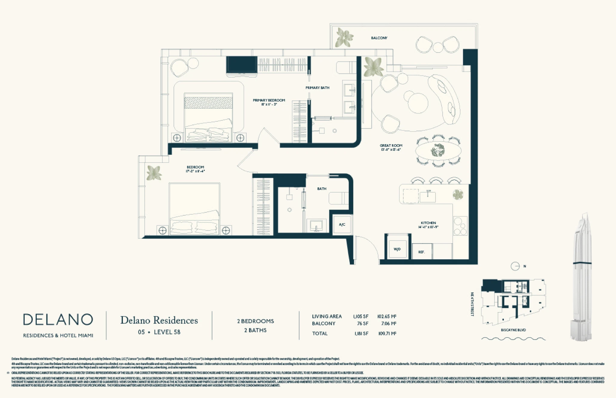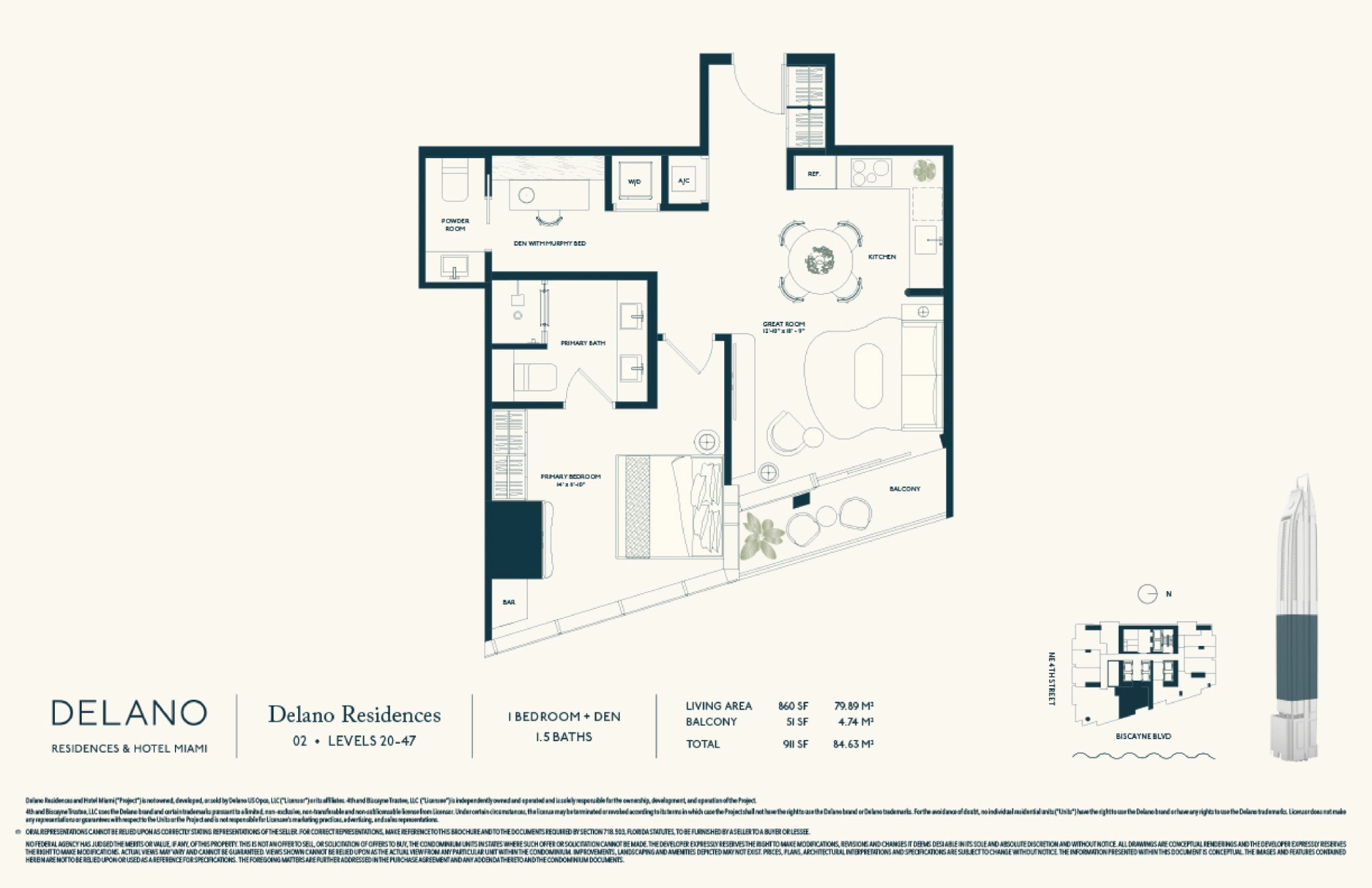 The floor plan collection offers a wide range of formats, enabling Delano Miami to appeal to multiple buyer categories.