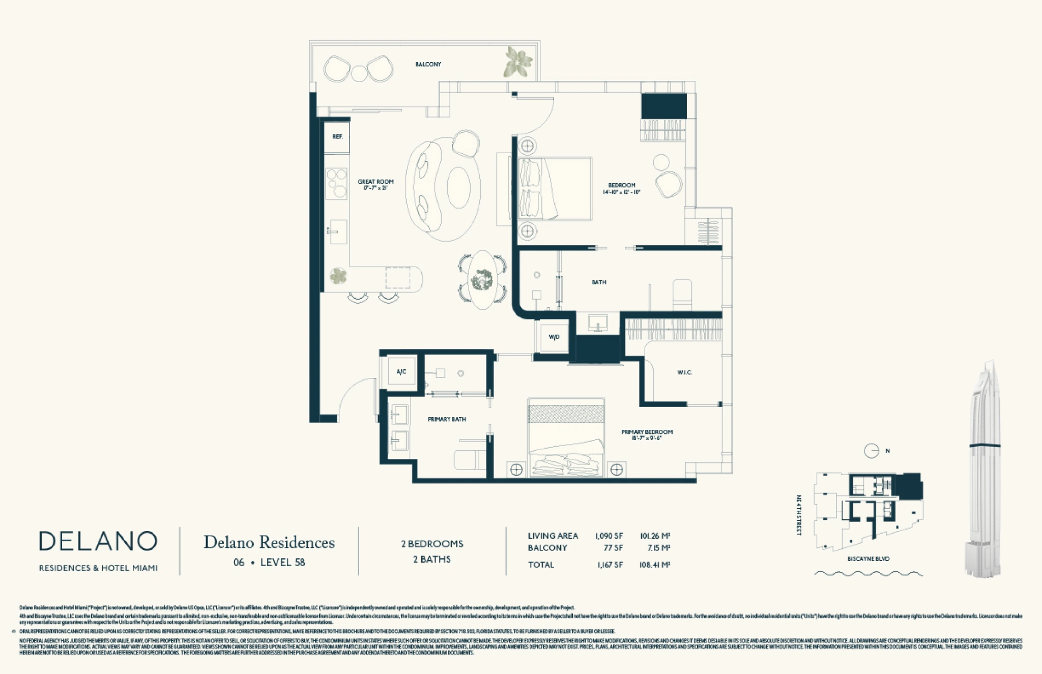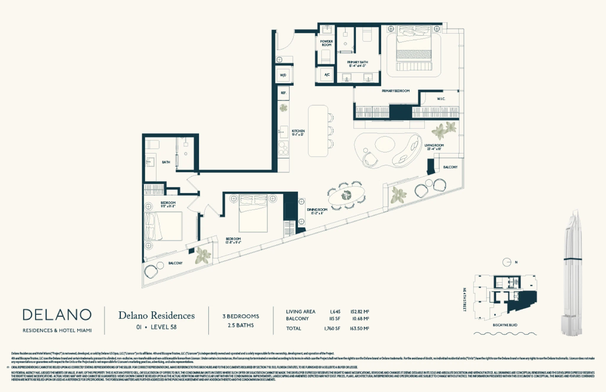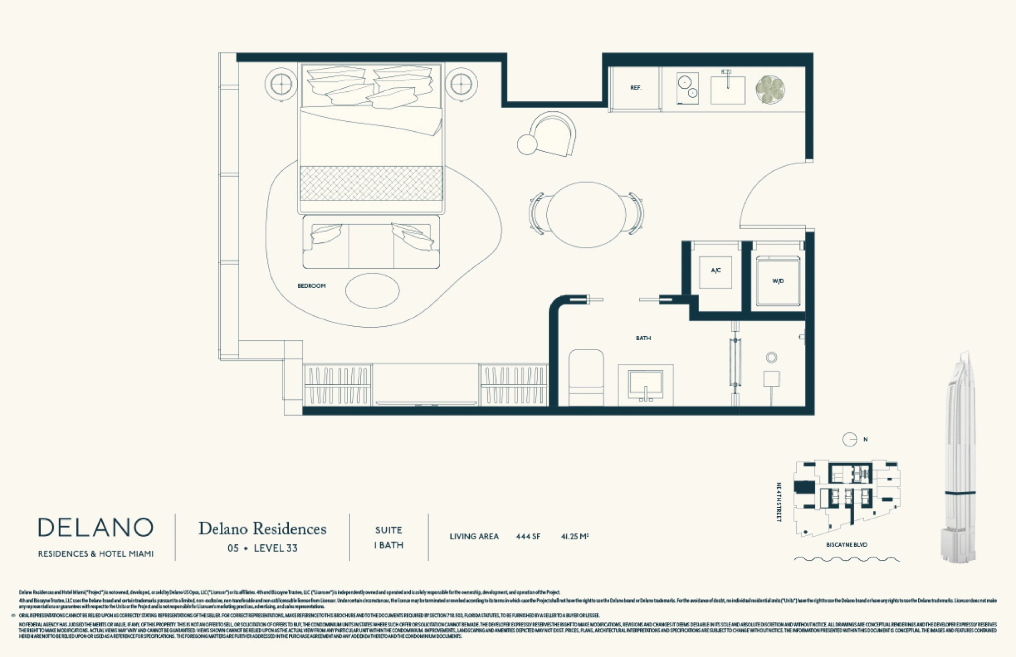 Location remains one of Delano Tower's main advantages. The project is connected to the city’s key destinations and districts, including PAMM, the Frost Museum of Science, the Adrienne Arsht Center, Miami Worldcenter, Kaseya Center, Bayside Marketplace, Bayfront Park, Brickell City Centre, the Brickell Financial District, the Miami Design District, Wynwood, Miami International Airport, and MiamiCentral/Brightline.