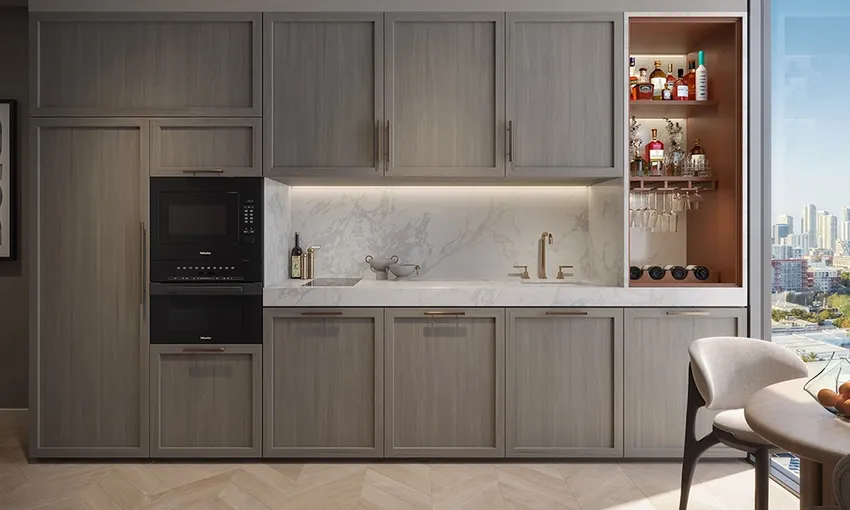 One West Twelve Miami Residences are designed in a modern, cozy style, exquisitely finished, fully furnished, and technically equipped. Immaculate designer cabinets in the kitchen and baths by the Italian brand Italkraft. Full set of integrated Miele appliances, including washer and dryer. Connected to smart technology system.