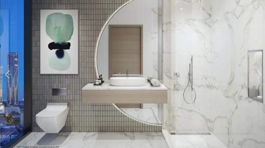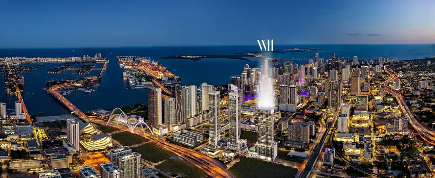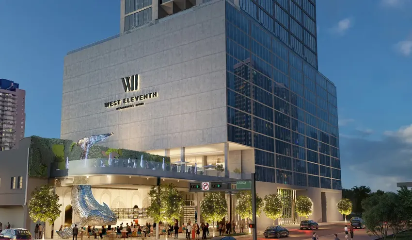 The 44-story WEST Eleventh Residences Miami features 659 luxury residences with breathtaking views of the Miami skyline and Biscayne Bay, from spacious studios to one-bedroom configurations, with ten-feet ceiling heights, floor-to-ceiling glass windows, and porcelain tile floors. Individual finishes, furniture, and appliances meet the standards of five-star hotels.