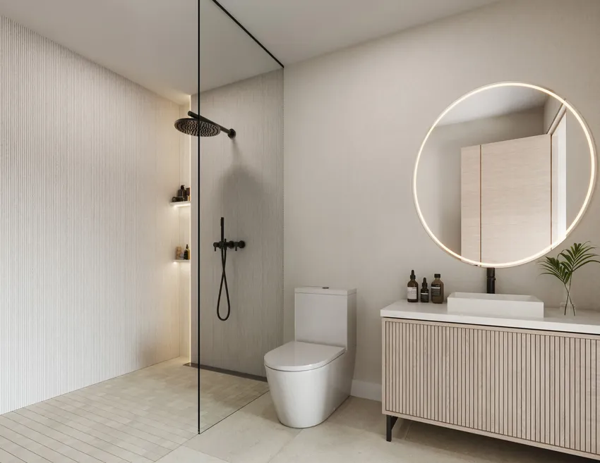 - Frameless glass shower panels emphasizing spaciousness and innovative design