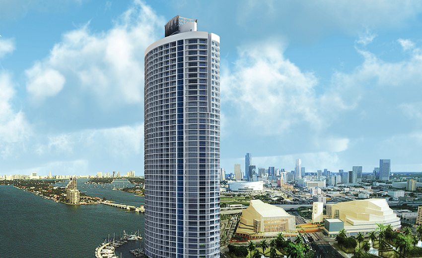 An exciting 60-storey tower of cylindrical form is surrounded by large terraces which open spectacular views of Biscayne Bay, Miami outlines and South Beach.