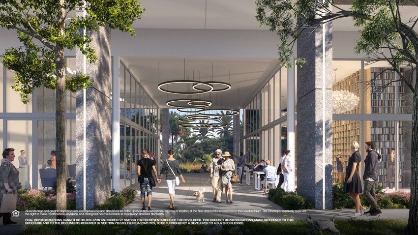 Sixth&Rio Fort Lauderdale shaped façade follows the curves of the river, designed as a portal between the neighborhoods, the park, and the waterfront. Art Deco exterior lighting and a patterned frontage inspired by the surrounding oak leaves create a balance between modernity and classic lines. IDDI's common areas and amenities, made in Art Deco and French Art Nouveau styles, are surrounded by natural views of the park and river.