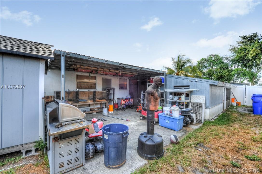 3/2 Hollywood home with large screened porch on side of house. Porch and driveway were permitted. Your kids and pets have lots of space to play in the large fenced yard. The utility room is so large it doubles as a work area for your hobbies. Electricity upgraded in 2015. Back shed stays/has permit. Hurricane panels. Some built-ins. Only 1 shed stays.
