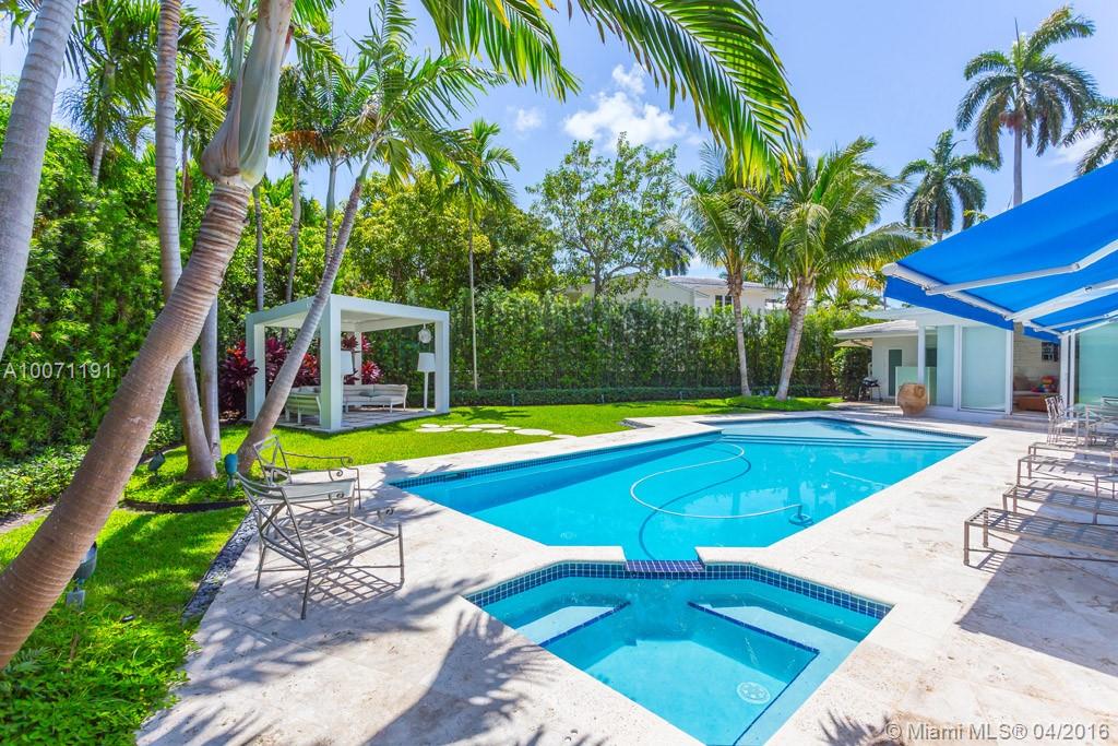 Elegant modern home for the sophisticated buyer located on prestigious guard-gated La Gorce Island, a private oasis of serenity. Four bedroom, three & half bathroom home with open floor plan and naturally lit living spaces, including a formal dining room with bar, eat-in kitchen and Florida room. Relaxing fireplace in living room. Oversized lot with private pool, cabana and patio.