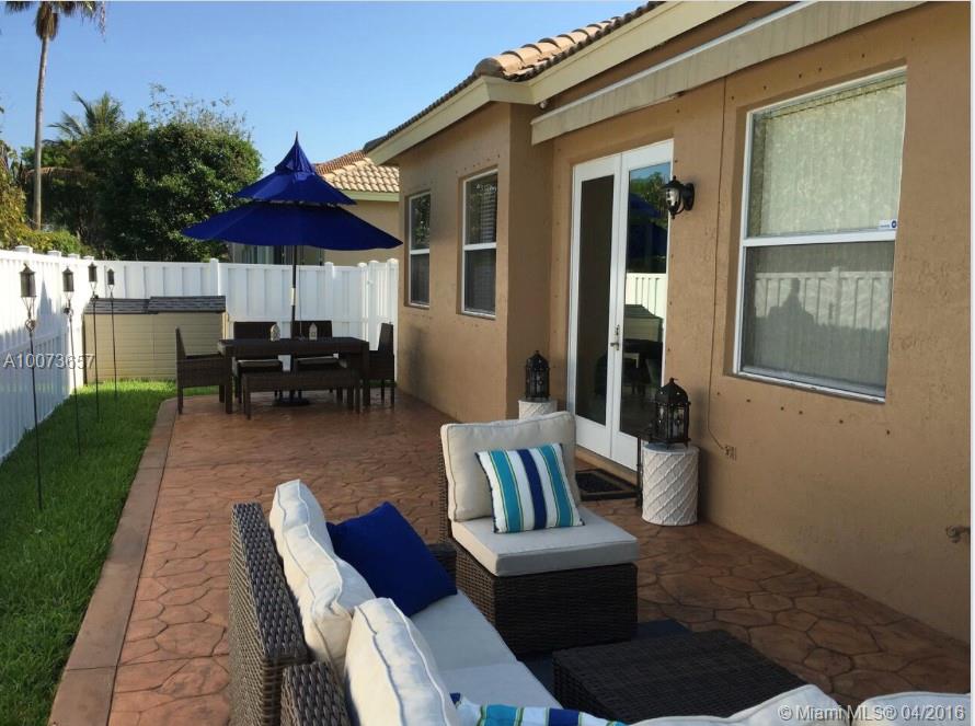 FABULOUS READY TO MOVE IN HOME, IN THE BEAUTIFUL MONARCH LAKES GATED COMMUNITY!!! THIS MUST SEE SINGLE FAMILY HOME FEATURES HIGH CEILINGS, ARCHES, TILE AND LAMINATE FLOORING IN BEDROOMS. CUSTOM CLOSETS, NEW A/C, FRENCH DOORS, 2 TERRACES (COURTYARD AND BACKYARD), RETRACTABLE AWNING, PVC FENCE, RECENTLY PAINTED INTERIOR/EXTERIOR, BEAUTIFUL FRONT LANDSCAPING, PRE-WIRED SYSTEM ALARM WITH MONITOR AND CAMERAS, NEW SPRINKLER SYSTEM. A+ SCHOOLS. CLOSE TO HOSPITALS, RESTAURANTS, SUPERMARKETS, I-75 AND TURNPIKE.
