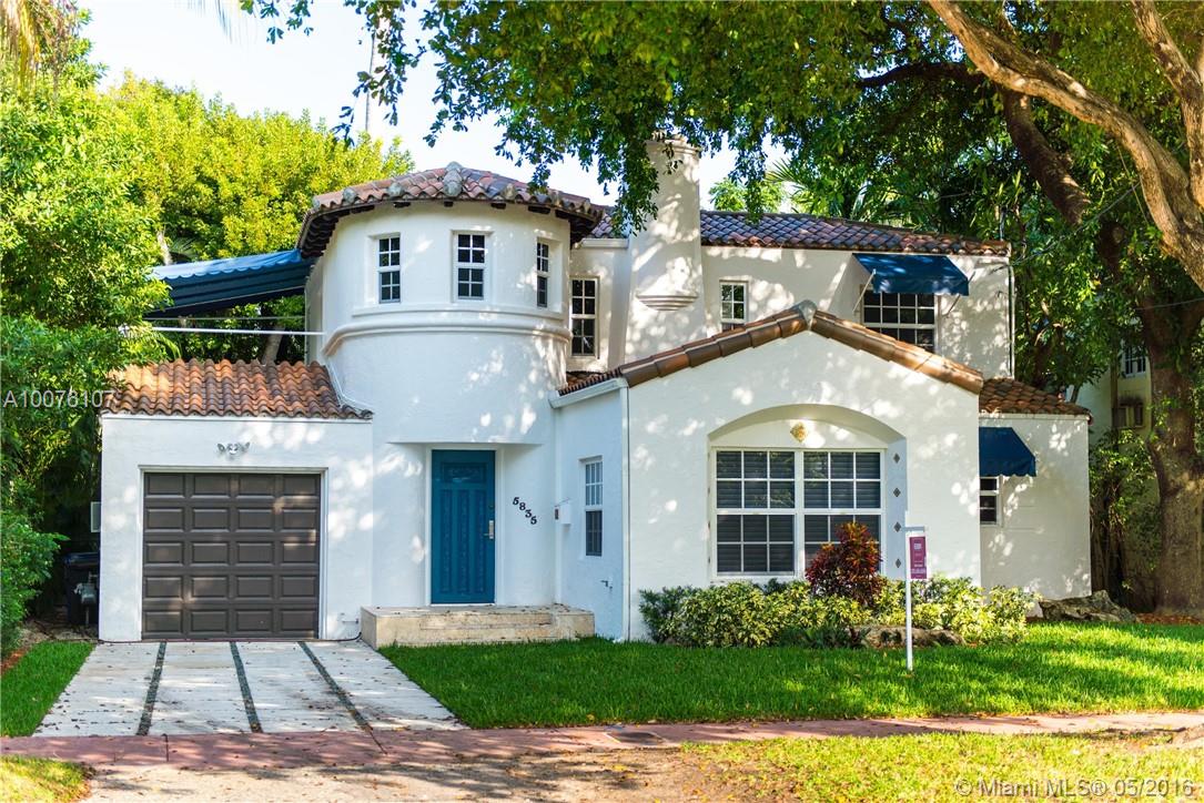 Mediterranean Magic w/ a modern twist on fabulous La Gorce Drive. Beautifully renovated 4 BD, 4 BA home originally designed by premier architect, L Murray Dixon. Stunningly remodeled w/ large eat in kitchen, gas stove, subzero refrigerator/freezer, & stone countertops. New hard wood & marble floors, hurricane impact windows & doors, volume ceilings, formal living rm. w/cathedral ceiling & glorious family rm. that soaks up the morning sun. Large lush back yard w/ splash pool. Easy to show!