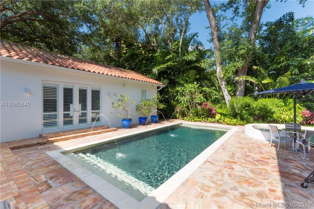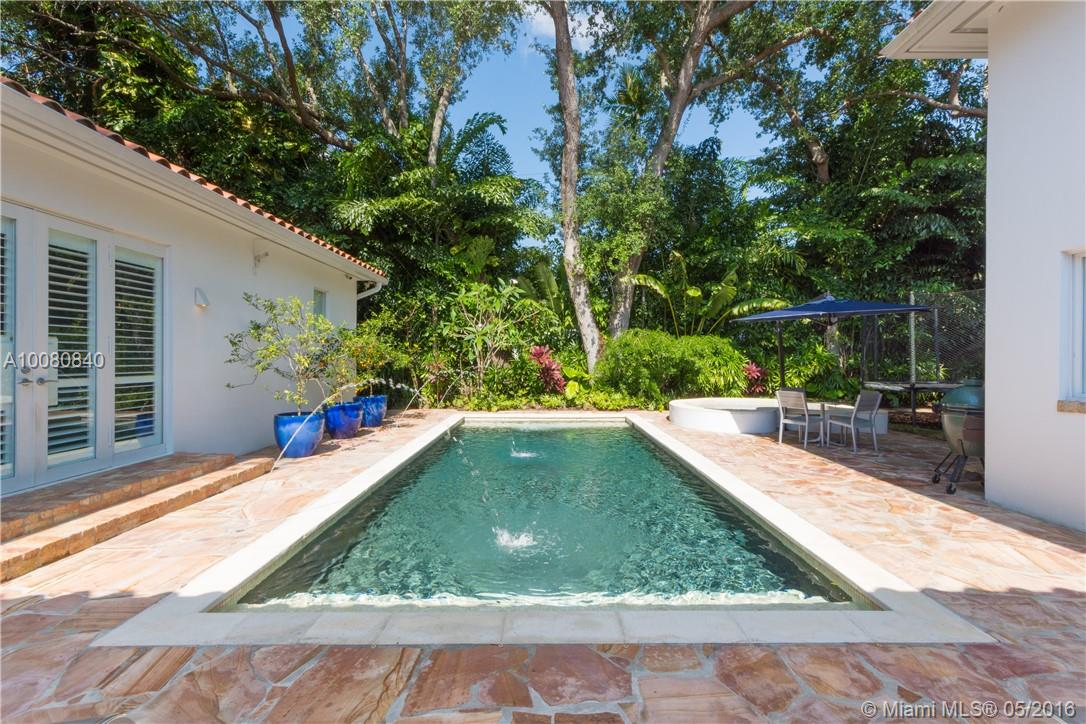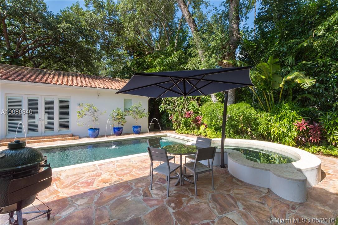Quintessential Coral Gables 1-story residence that checks off all your boxes for your new residence in Miami on a quarter acre. This 5BR/5BA home has been totally renovated from head to toe including high-end kitchen & bathroom finishes, gorgeous Brazilian teak hardwood floors & impact glass windows & doors. Banks of French doors recently outfitted w/ Plantation shutters lead to the Flagstone deck & mosquito repellent system. Pebbletec heated pool w/ spa & tranquil fountains. Gated w/ 2 car gar. Must see!