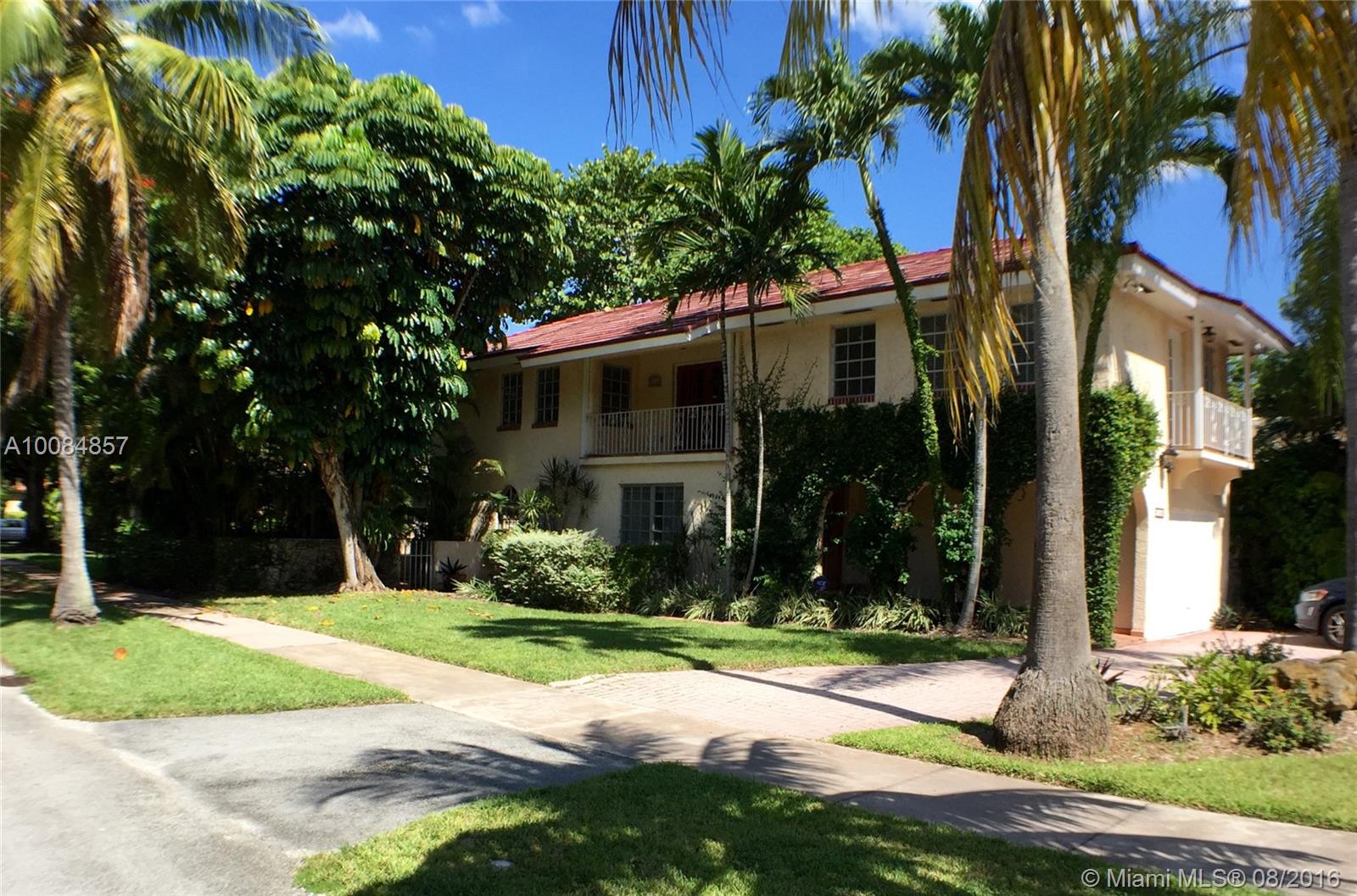 Back on the market with NEW ROOF & priced to sell. Beautiful 2 Story Mediterranean style 3BR/3B on corner lot of tree lined street in historic Coral Gables. Generous paved circular drive with space for 4 cars, exterior brick paved fenced-in patio, two exterior balconies, Mexican tiles throughout, 2nd floor loft w/balcony accessed via 2 French doors, duel air conditioners, second floor plantation shutters, central alarm system, cherry solid wood interior doors, stainless-steel appliances.