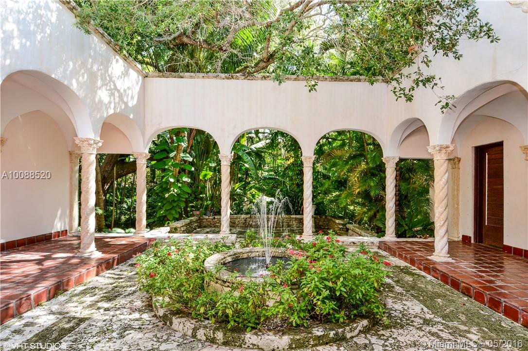 This grand Spanish-revival residence hidden behind a magnificent coral rock wall on secluded 3/4 acres is located in one of Coconut Grove most prestigious neighborhoods. Elegant estate was meticulously restored to retain its old world accent and original architectural integrity. Lush landmark surrounds a stunning pool and sunken garden created million years ago from marine limestone that varies in elevations and is seamlessly enhanced by professional landscaping. Just few yards from the ocean.