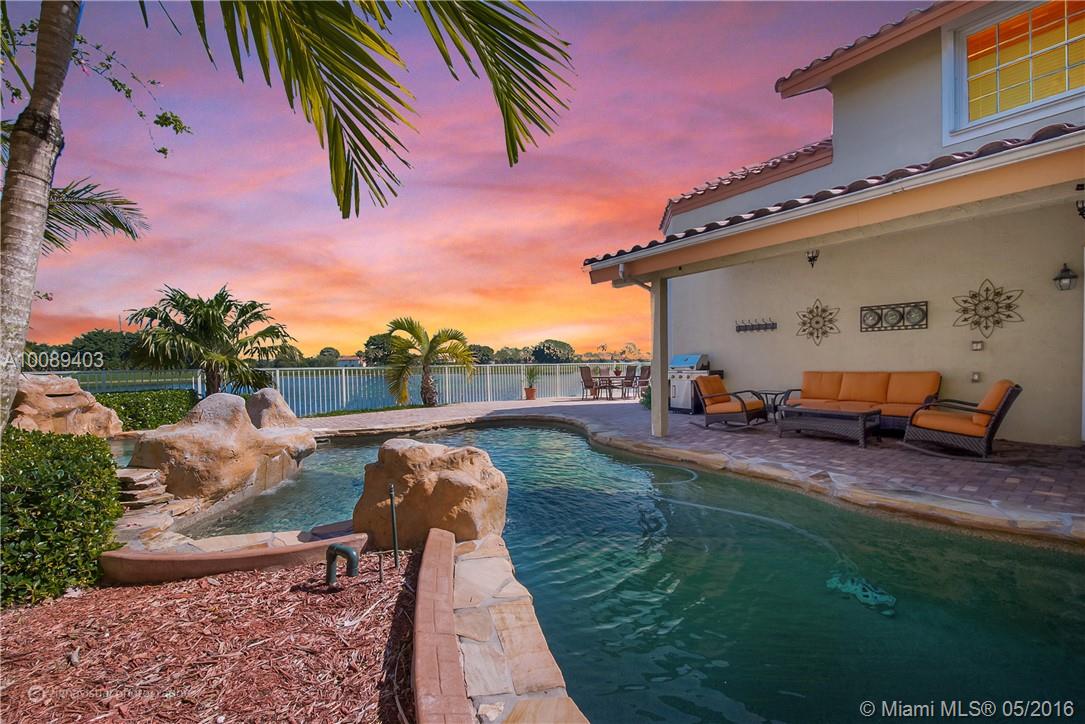 Doral waterfront living at its best - Nothing else like it. First time on the market, 85 feet of wide unobstructed stunning views over the lake and the silver golf course in prestigious Doral Dunes. Entertain with privacy in the grand pool area while watching spectacular sunsets over the horizon. Meticulously maintained. Move in ready!