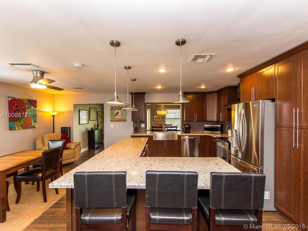 Lovely remodeled spacious home w/many updates including a beautiful designer style kitchen with granite counters and stainless steel appliances; updated bathrooms; custom built cabinets in all closets; Impact windows and doors including garage door; marble sills throughout; wood laminate flooring throughout; no carpet; A/C replaced in 2013; Florida room addition used as formal dining room; large covered patio overlooking large fenced yard with plenty of room for pool; outdoor shower & much more!