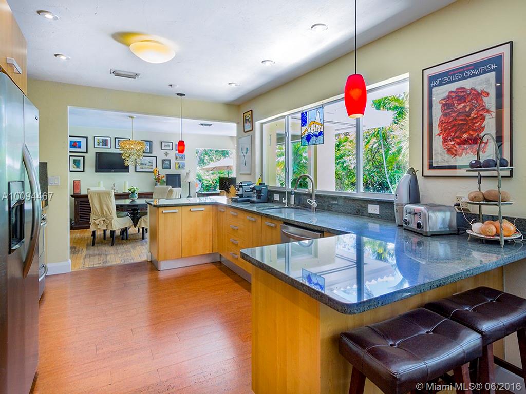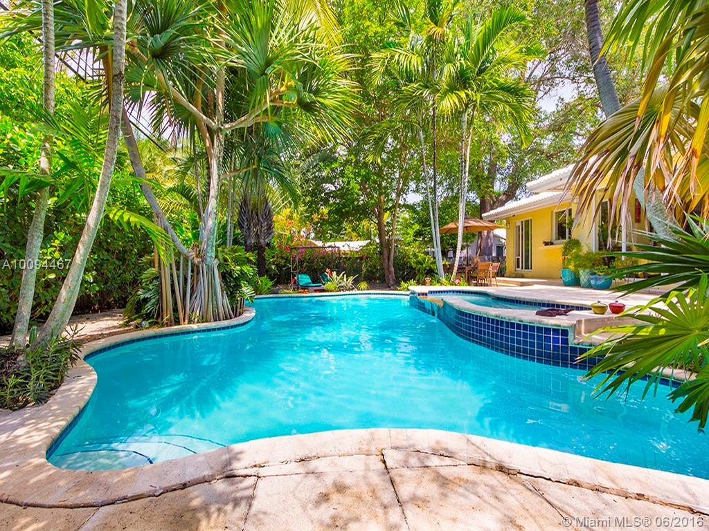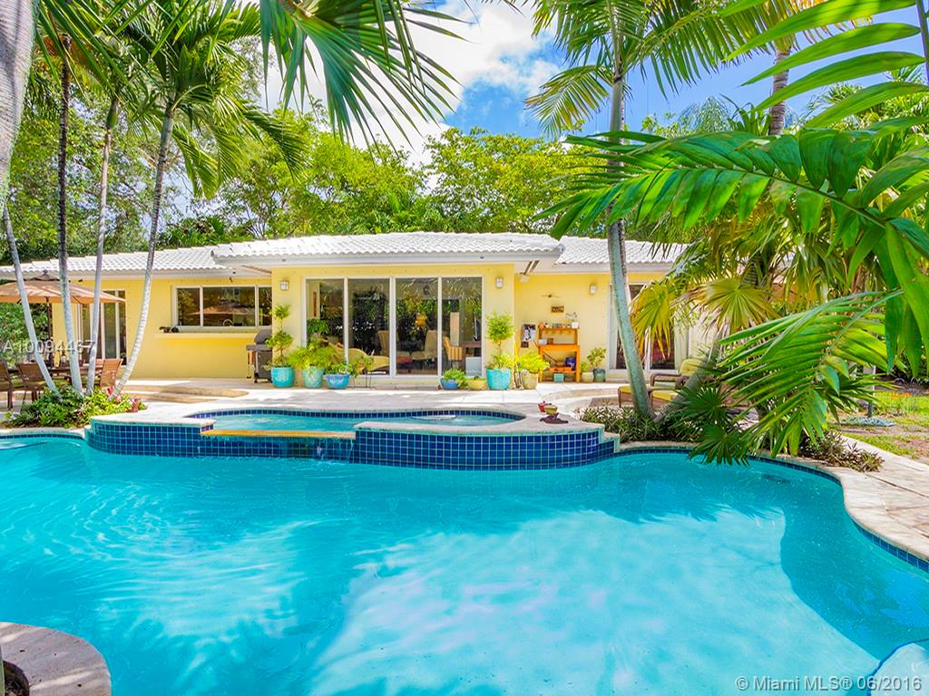 Smartly updated 2/2 on lushly landscaped corner lot. Open floor plan w/abundant light through large windows integrates indoor/outdoor views. Flowing LR/DR/FR w/hardwood floors, fireplace, built-ins & recessed lighting. Open kitchen sparkles w/modern cabinets, SS appl, pantry, & breakfast bar. Master bath marble floors & walk-in shower. Master bed opens to spacious multi-level patio & pool/spa. Irrigation system, new A/C. In central Miami Shores & walkable to services & shops. Sure to move fast so act now!