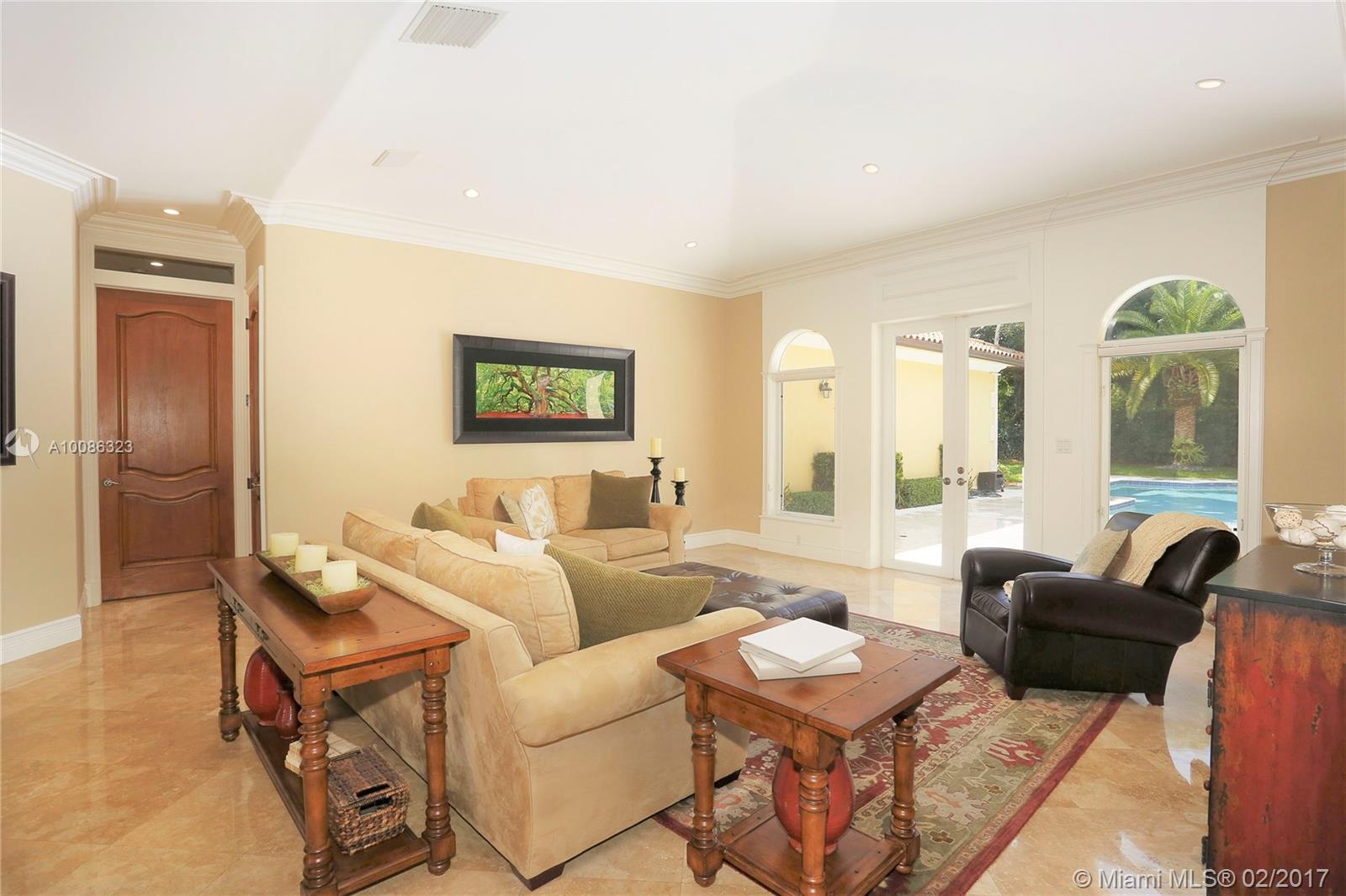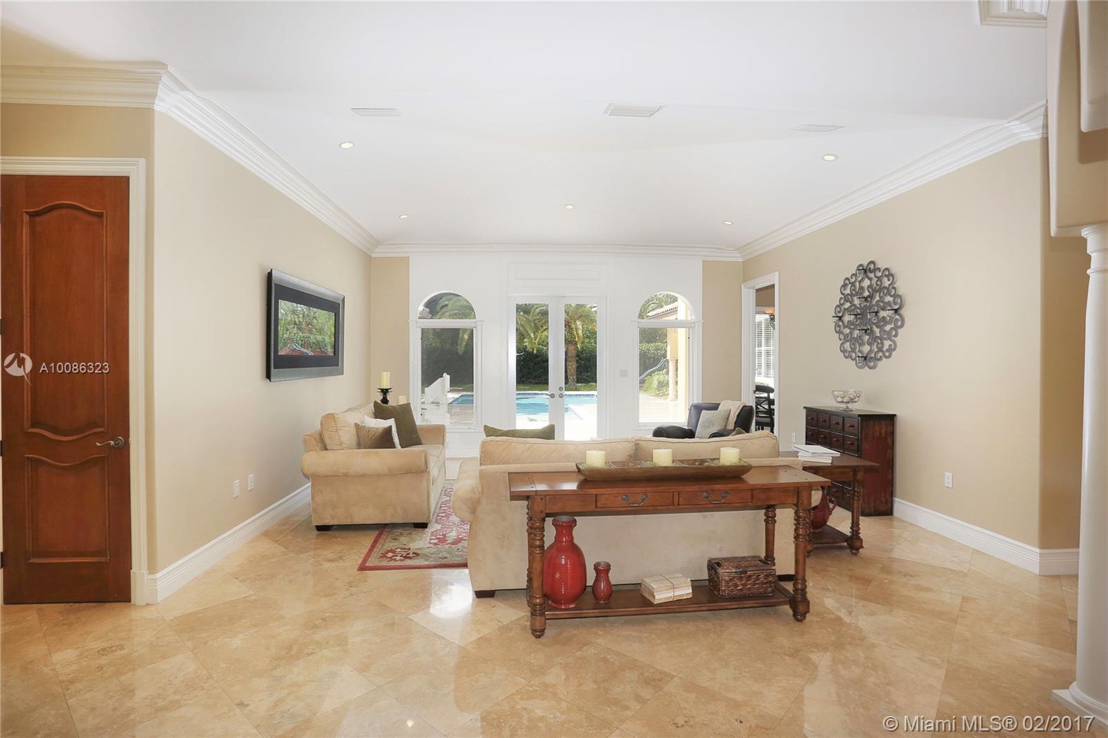 Exquisitely maintained property with excellent floor plan in north Pinecrest. Luxury appointments include natural stone and wood finishes, impact-resistant windows/doors, S/S appliances, crown moldings, coffered ceilings, built-in speakers, salt water pool filtration, air-conditioned garage with tile flooring, and much more. Beautiful loggia with tongue-and-groove ceilings overlooks large pool area, with yard large enough for grass and children's playground. Gated property, best offering under $2 M.