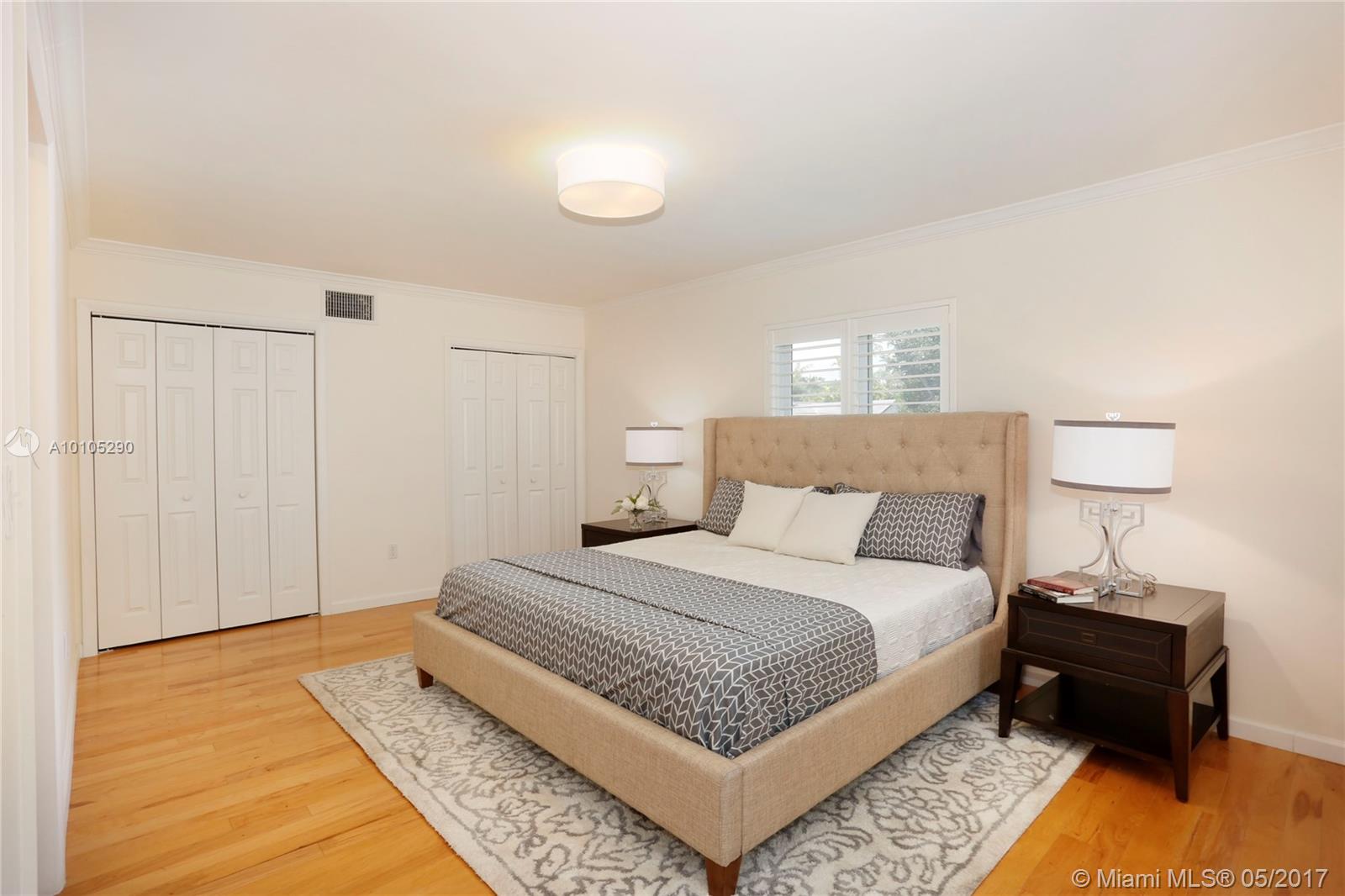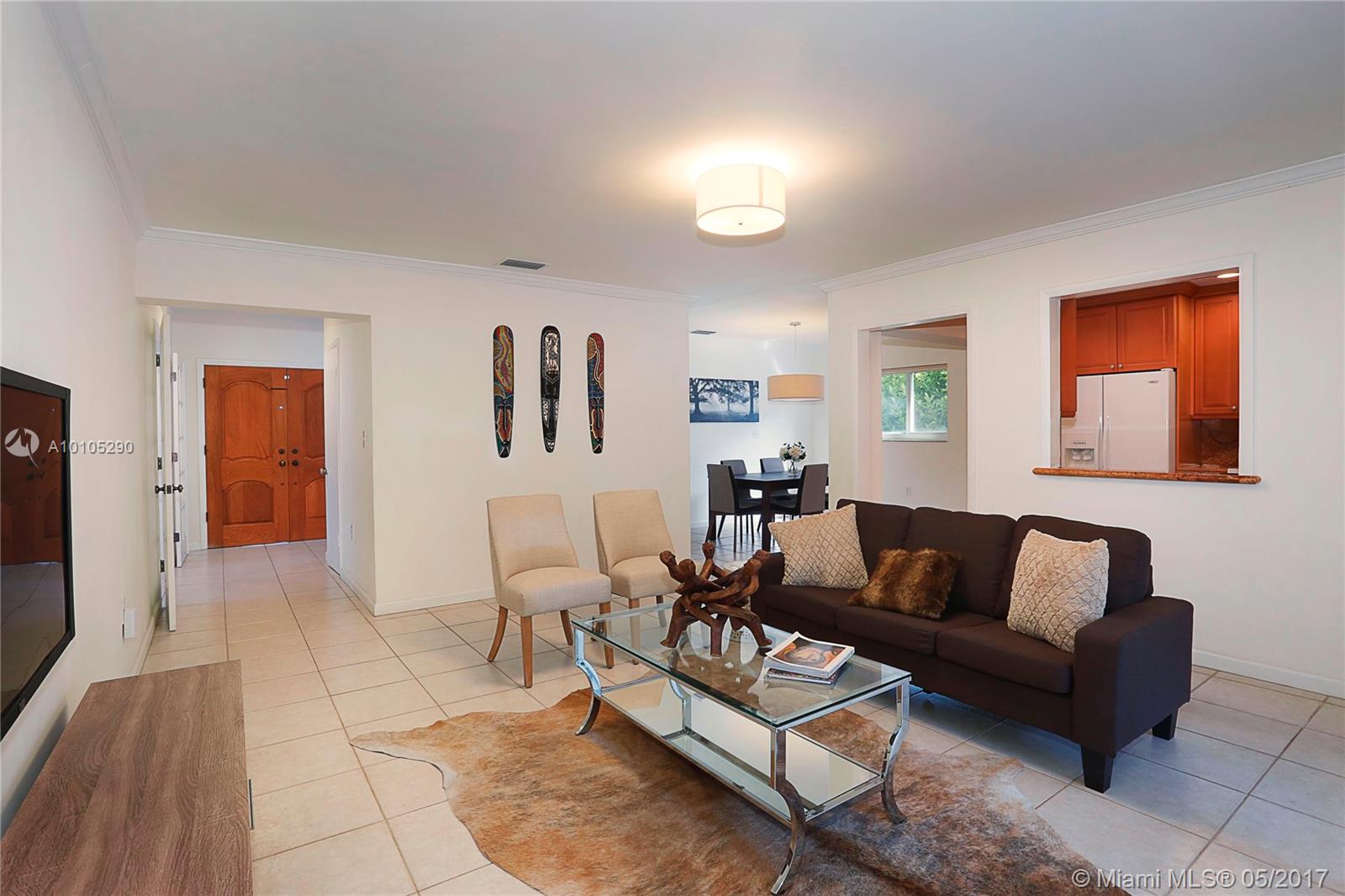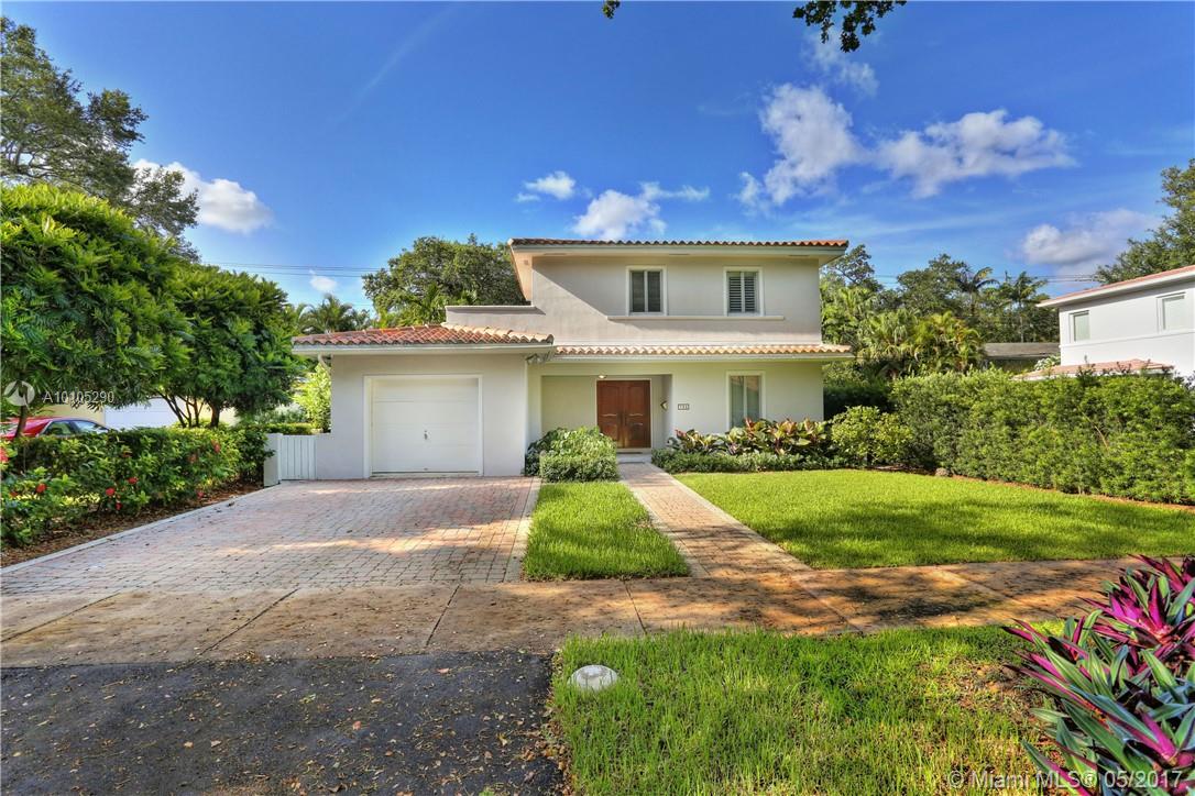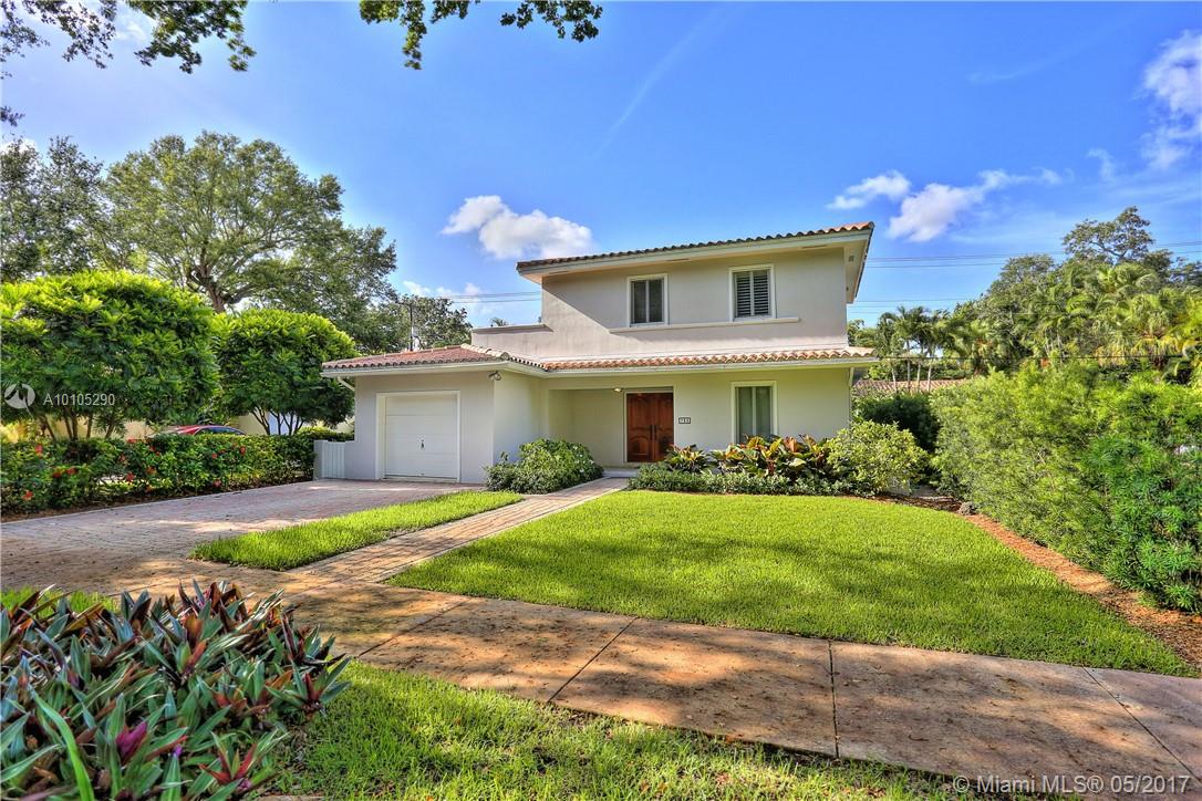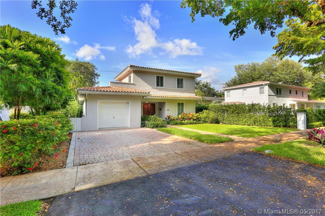 Beautiful, contemporary home situated in the Golden Triangle on wonderful street. The large spaces & open flrplan offer fam rm, kitchen & dining rm all adjacent creating a perfect entertaining home. Spacious den could be used as frml space or as office or playrm. 2 bedrms down w/ private master ste upstairs. Wonderful details include impact glass, hdwd & tile flrs, screened terrace, tiled garage, master w/walk-in closet & granite countertops. Conveniently located to Youth Center, Venetian Pool & airport.