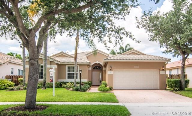 POPULAR "NEWPORT" MODEL IN PRESTIGIOUS PEMBROKE FALLS * THREE WAY SPLIT FLOOR PLAN 4 BEDROOMS, 3 BATHROOMS, AND FABULOUS POOL WITH COVERED PORCH * FULL EAT-IN KITCHEN W/ CENTER ISLAND, OAK CABINETS, UNDER CABINET LIGHTING, GRANITE COUNTER-TOPS W/ EXTENDED SERVING BAR AND FULL WALK-IN PANTRY * PORCELAIN ITALIAN TILE * NEW CARPETS IN THE BEDROOMS * BAHAMA SHUTTERS IN MASTER BEDROOM AND HUNTER DOUGLAS WINDOW TREATMENTS * GATED COMMUNITY WITH RECREATION CENTER * HOA INCLUDES CABLE,FIBER-OPTIC INTERNET & ALARM
