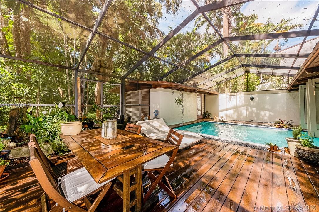 One of a kind MIMO bungalow, desirable CG Park, S. Grove. Close to Village in neighborhood of million + dollar homes.“ The Reed Residence" built by arch George Reed, uses Mid Century Modern to achieve tranquil indoor/outdoor lifestyle. Screened atrium courtyards, lg deck &very unique pool connect 3 buildings. Living space surrounded by tropical canopy which offers privacy. Cypress beams, cedar ceiling along w/the original double glass doors & terrazzo fls make hse feel larger than 1186 sf.