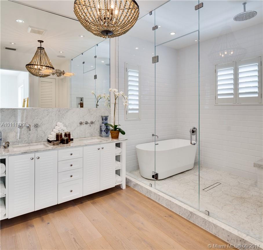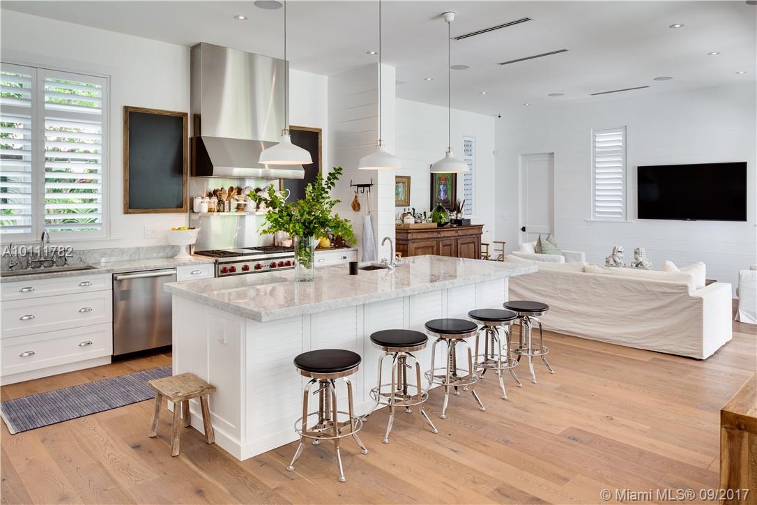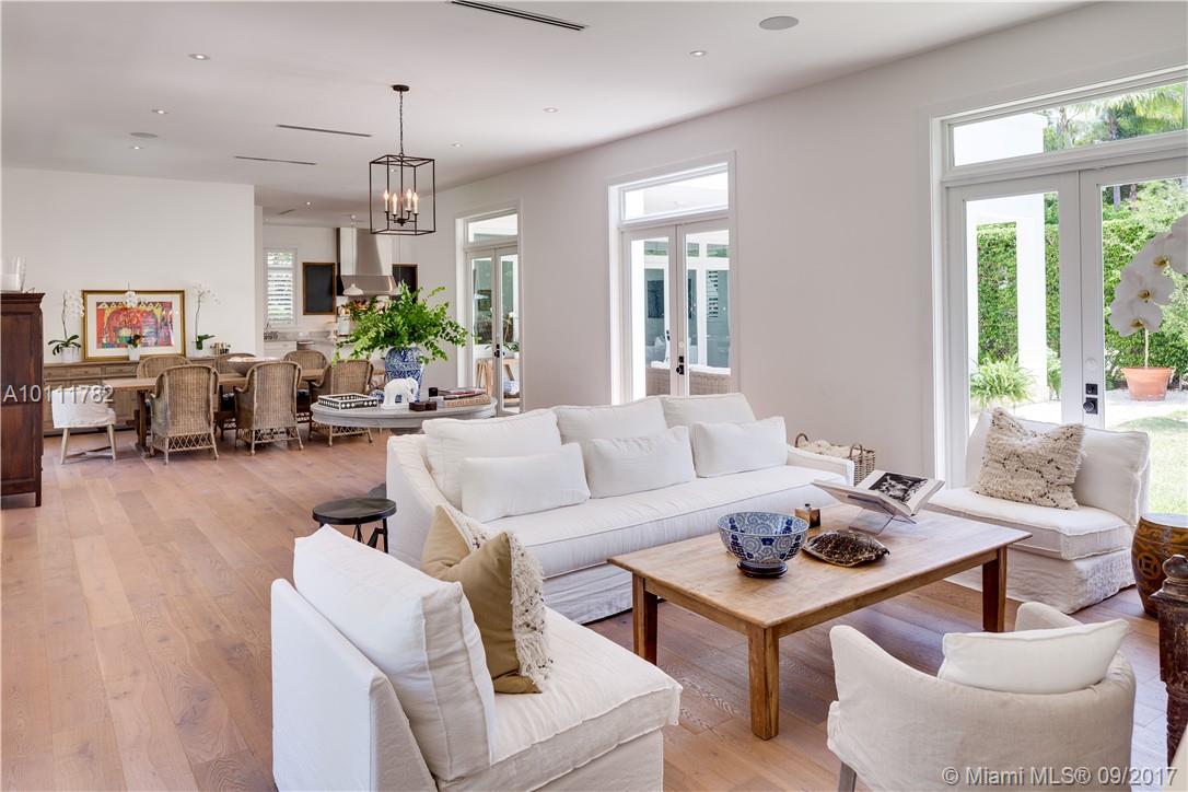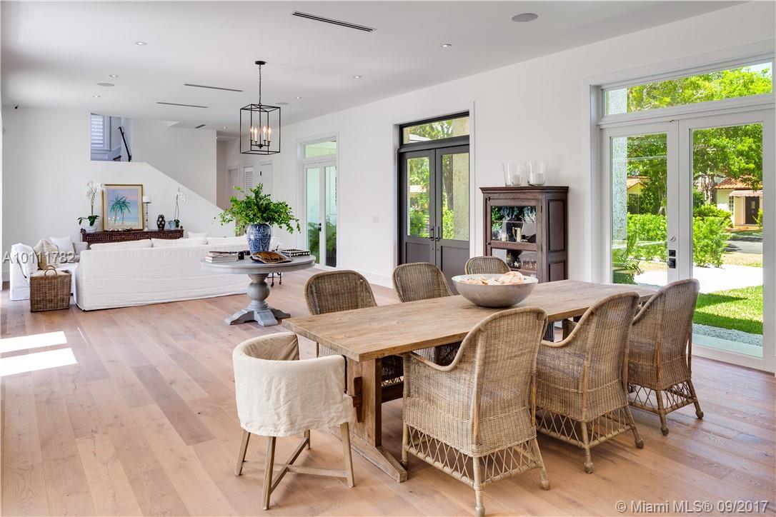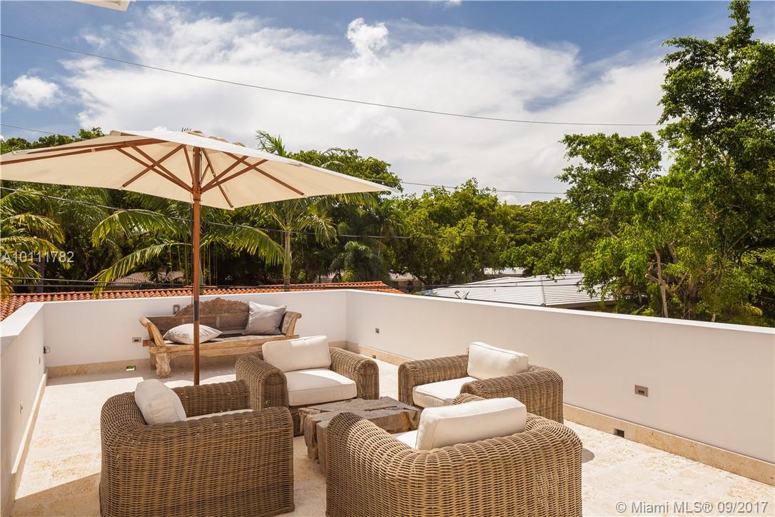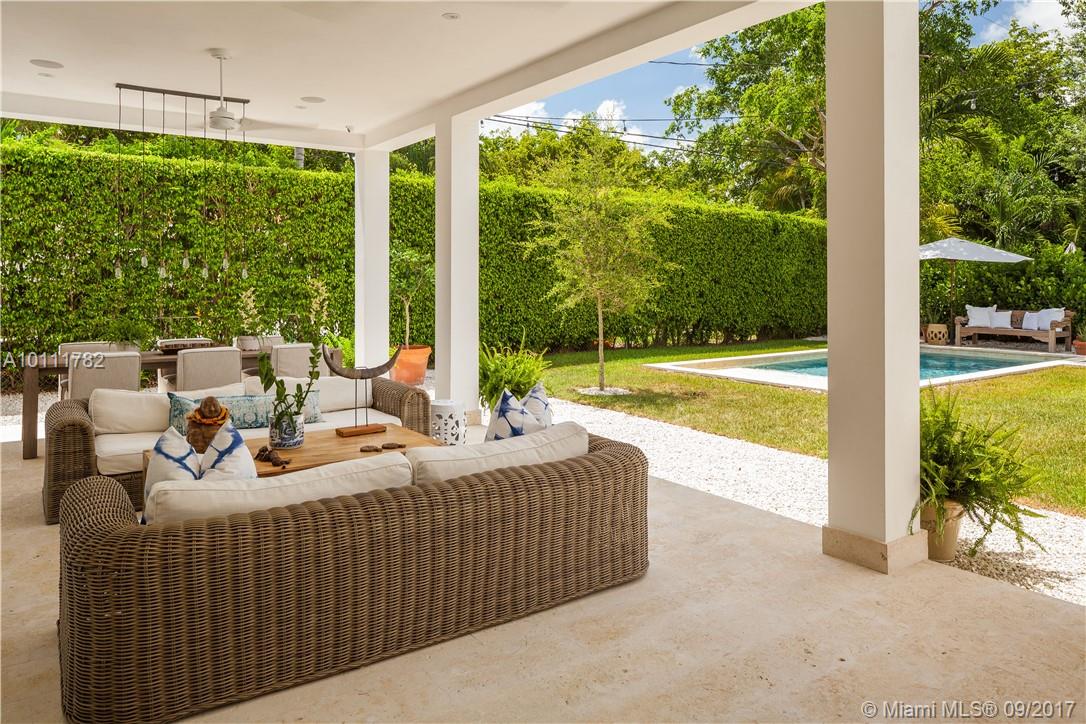 Stunning show stopper! South Gables new construction. Casual Elegance with open kitchen, large family and living area. 11' ceilings, wide plank wood floors, chefs gourmet top of the line kitchen, all overlooking outdoor covered terrace and pool. Impressive summer kitchen, perfect for entertaining and dining alfresco. High end sound and security system. Spabath- Designer closets- elevator- second floor terrace and balconies. Car garage fits 1 1/2 cars.