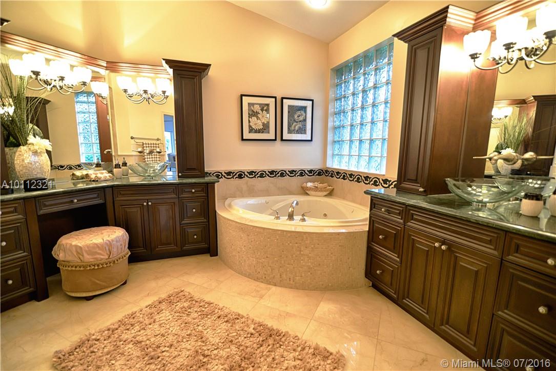 Located in boutique community of The Laurels at Weston Hills CC. Custom Regency built one story boasts long lake views with paver patio & heated pool w/new marcite & spa. Oversized fully fenced 18,000 sq ft lot. Newer A/C 2010, 3 New bathrooms, master bath with full marble, jacuzzi tub & custom cabinetry. Enjoy 6 spacious bedrooms (1 used as office) Extensive crown moldings, Coral stone FP, Volume ceilings, Full accordion/rolladen protection, surround sound and extended 3 car garage,Mosquito control.