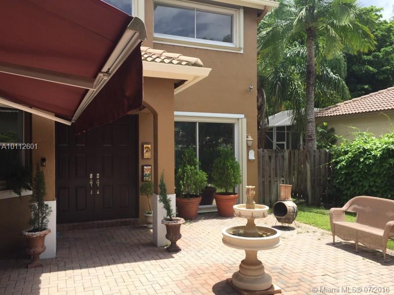 This freshly painted beautiful courtyard home provides natural light throughout the home. Set in a quiet small neighborhood that is walking distance to a shopping center that can literally provide all your living needs. The reasonable association fee covers cable, home security, manned guard gate, lawn & irrigation service, swimming pool and exercise building. Feel secure in this home during hurricane season with easy close accordion style shutters and powerful full home generator.