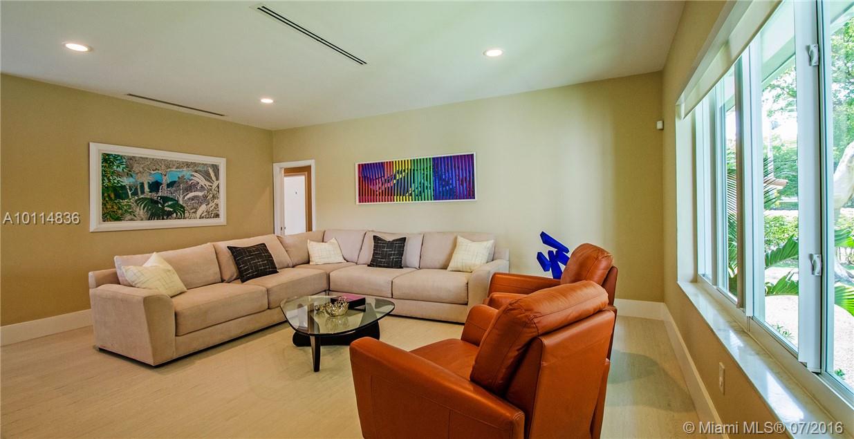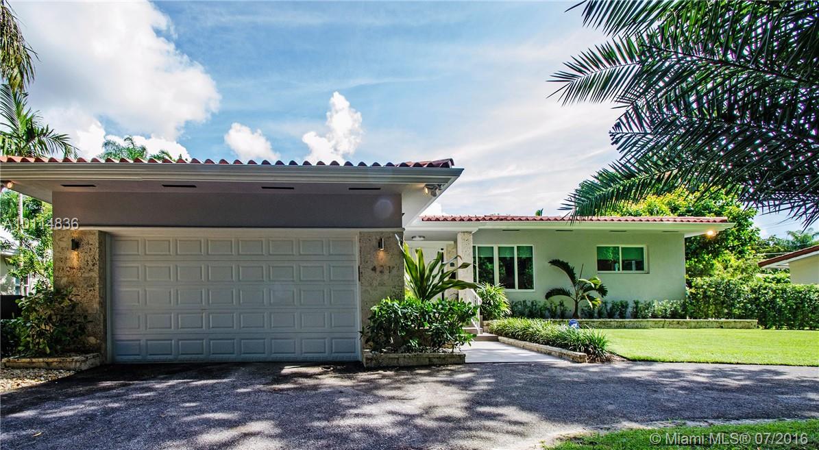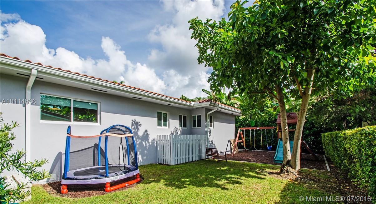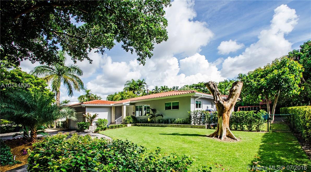 Beautiful one-story on double sized South Coral Gables lot. This mod 3/3 + DEN has been completely remodeled with great taste and has gorgeous features: beautiful new floors, kitchen, baths, A/C, impact windows & marvelous landscaping. Immerse into a spacious formal dining & living room and also enjoy a great big yard that has an amazing brand new pool w/waterfall, electric cover and water heater alongside a deck perfect to entertain. Centrally located to walk to new Ingraham, Sunrise, & M Christmas park.
