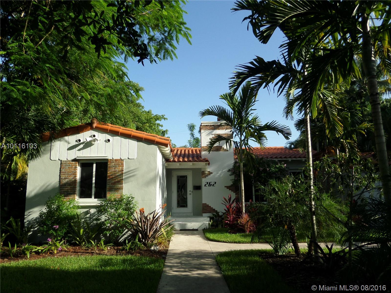 Lovely renovated 3/2 home, w/eat in kitchen, granite tops & backsplash, dbl sink.SS appliances, spacious solid-wood kitchen cabinets & pantry. Huge master bdrm w/additional sitting area w/direct access to large outdoor deck & tropical fenced-in yard, 2 walk in closets, 12' high ceiling. 2 renovated bathrooms, MBath w/Jacuzzi, lots of closet space, wood floor, fireplace, recessed lighting, 2 A/C units, garage, new impact windows & doors, wash/dryer, shutters, beautiful tropical landscaping.