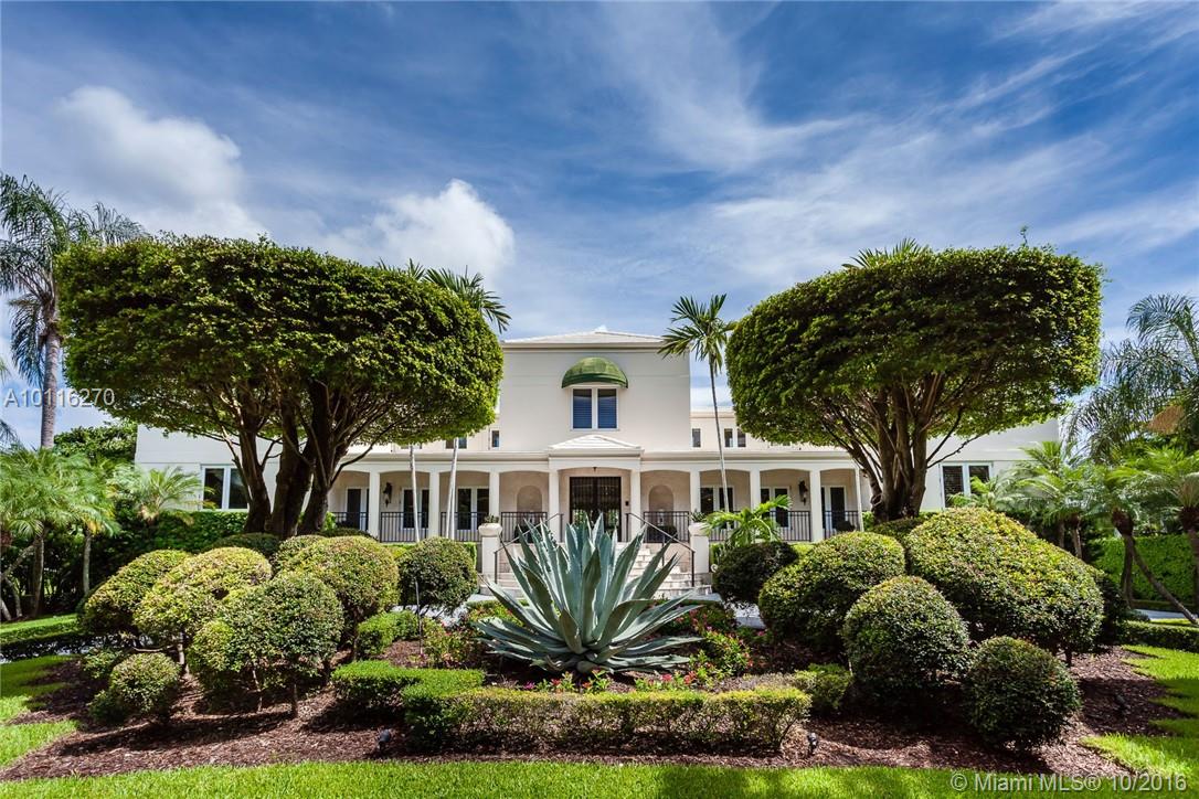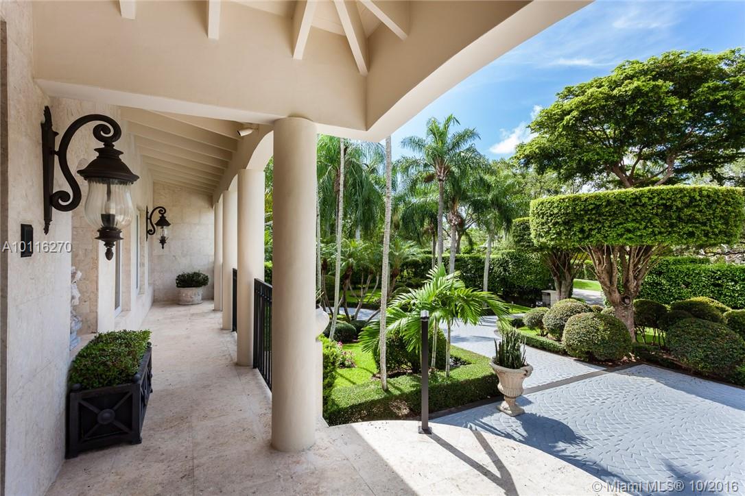 Located in esteemed Gables Estates, this extraordinary gated luxury home provides 181 ft. of expansive waterfront along with a 52 ft. dock. Design elements include a grand staircase, coffered and tray ceilings, crown moldings and travertine floors. Relax in the master suite with loft-style sitting room and spa-like bath. Home features indoor/outdoor spaces great for entertaining. All bedrooms contain en suite bathrooms and views overlooking the canal, sparkling pool, or beautifully landscaped garden.