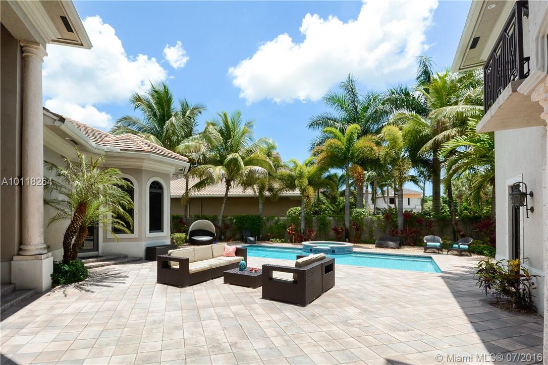Waterfront Courtyard estate with separate 1 bedroom 1 bath guest house w studio kitchen. Soaring ceilings,marble,crown moldings, platation shutters throughout.Gourmet kitchen with top of the line appliance, gas stove.built in acquarium in living room.Built ins in closets. Security camera system. Summer kitchen. Wrought Iron staircases.Solid core doors.Walls were hand painted with custom paint in entranceway.All vessel sinks in bathrooms.Cove lighting in living & dining room.