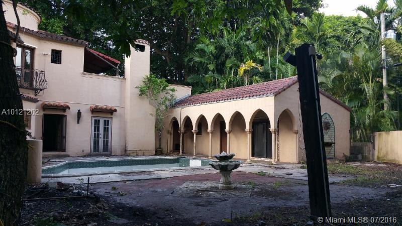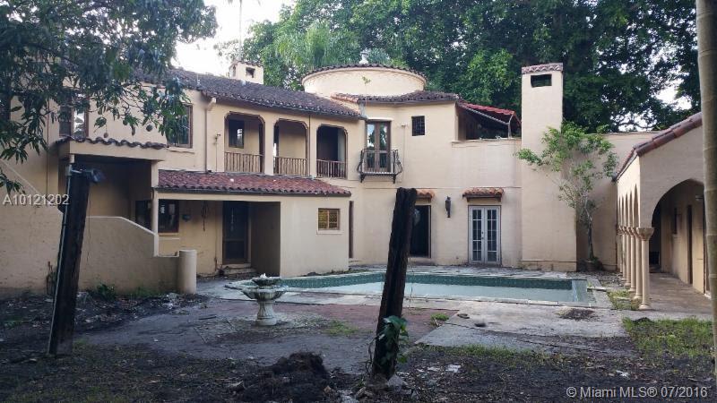Own a piece of Miami history! This historic palace was originally built for the Merrick family and includes a 2nd floor outdoor terrace, a courtyard style pool area, and a big corner lot with many potential entertaining areas. Property needs complete rehab, but will be a one of kind home with tremendous value once completed. Buyer must have vision.