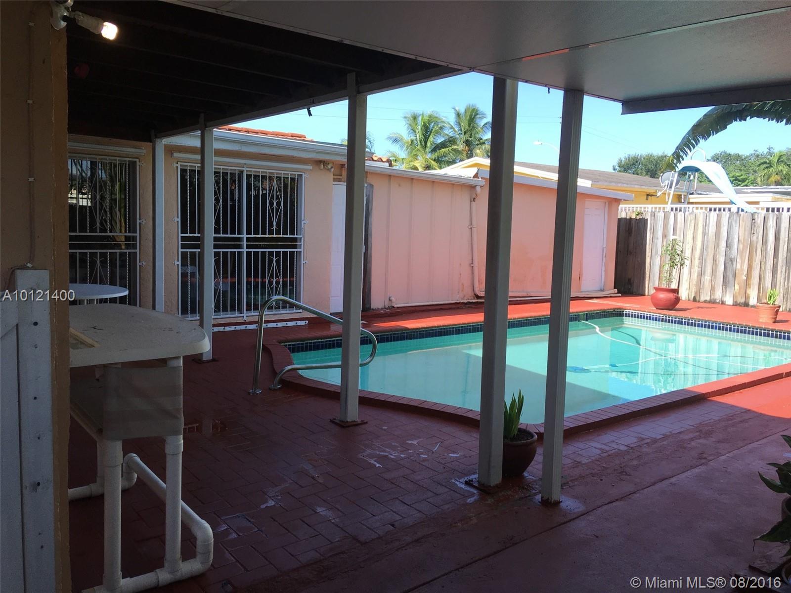 BACK ON THE MARKET. Great neighborhood home. Total of 5 bedrooms and 3 baths, including an in-law quarters. Electronic gate, tile roof, hurricane shutters, pool, bars in all windows, front porch and back covered patio. Shower for the pool. Family room, formal dining, side covered patio. Much more. Must see. All window treatments and lighting fixtures stay in the home. Water heater an Dryer are gas.